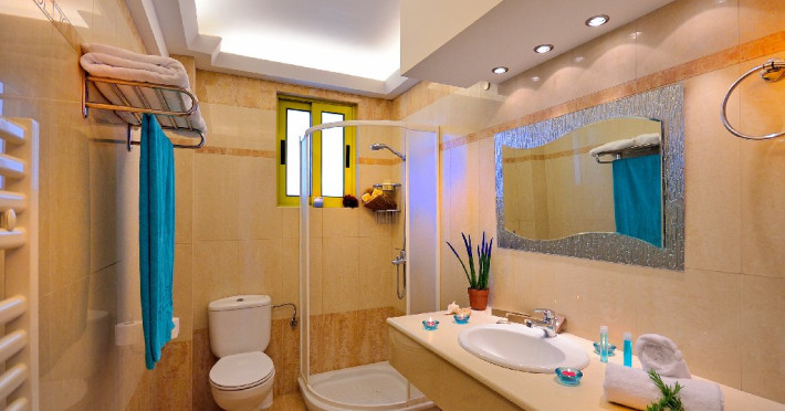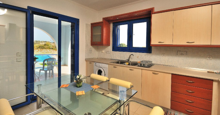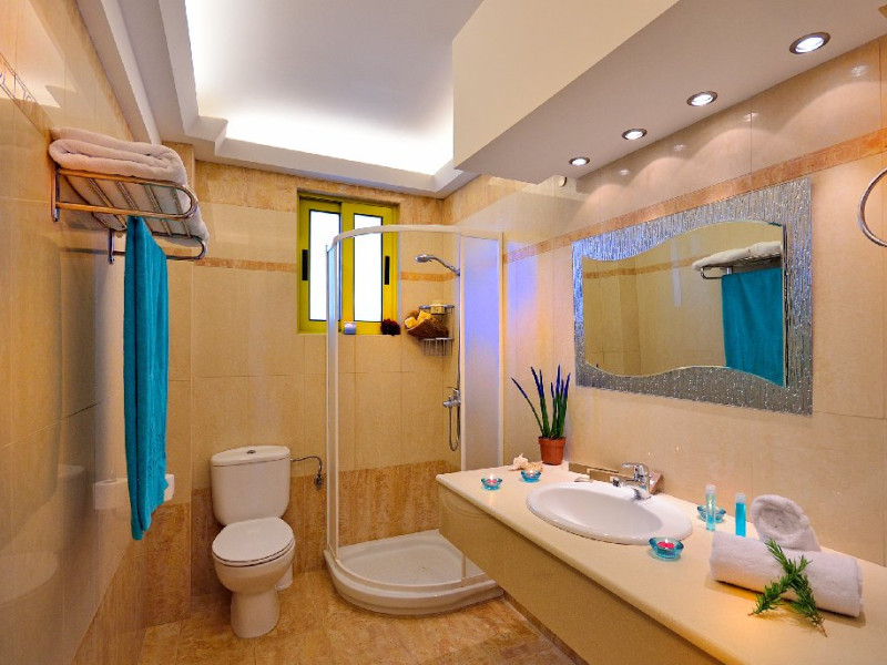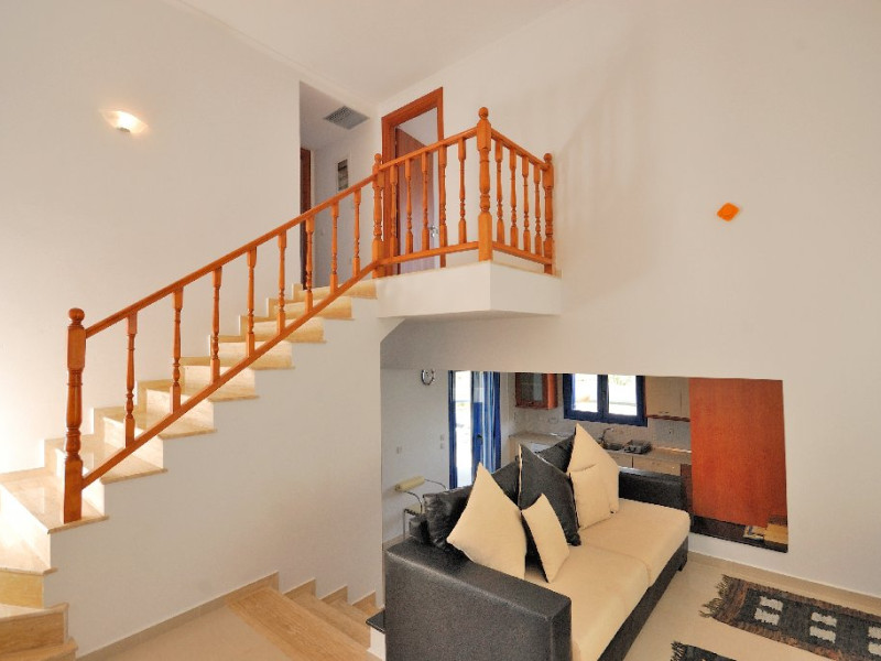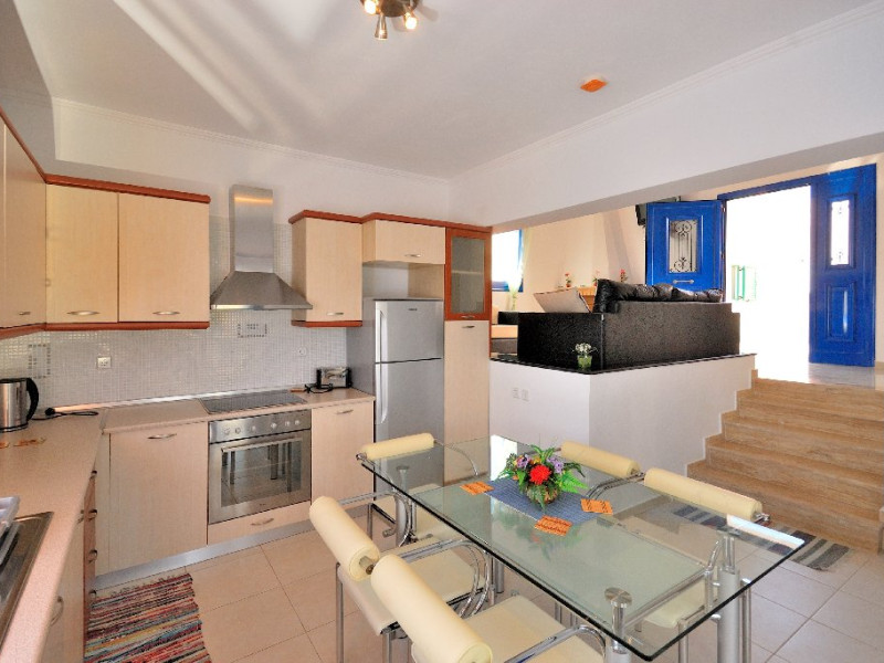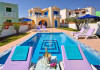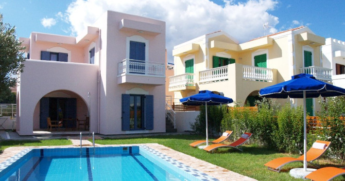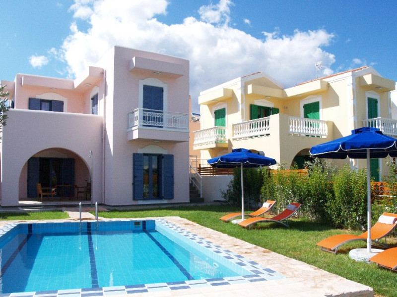 Dotari camere: Vilele au aproximativ 128 mp si au parter + etaj; la etaj sunt 3 dormitoare separate + 1 baie iar la parter 1 living room, 1 baie, 1 mini bucatarie. Ocuparea maxima este de 8 persoane (2 paturi duble, 2 paturi single si 1 canapea pat). Vilele sunt dotate cu aer conditionat (gratuit), acces internet WiFi (gratuit), telefon, seif (gratuit), televizor, CD-DVD player, bucatarie (frigider, plita + cuptor, faclitati pentru ceai/cafea, fierbator de apa, toaster, masina de spalat vase, vesela), masa si fier de calcat, masina de spalat rufe, uscator de par, halate si papuci de baie, balcon/terasa, prosoape de plaja, piscina si gradina privata, parcare, room service 12 ore, pachet de bun venit (vin, gustari).