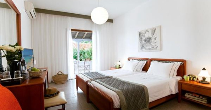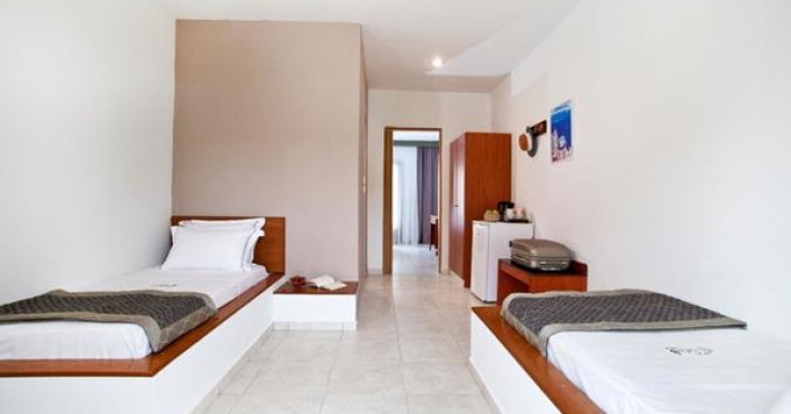 The hotel lies in the beautiful area of “Beach Elia”, in the peninsula of Sithonia/Halkidiki, which is close to the villages Nikiti (10 km) and Neos Marmaras (10 km), where guests will find a lot of bars, restaurants and shops. The bus station is 400 m away.
