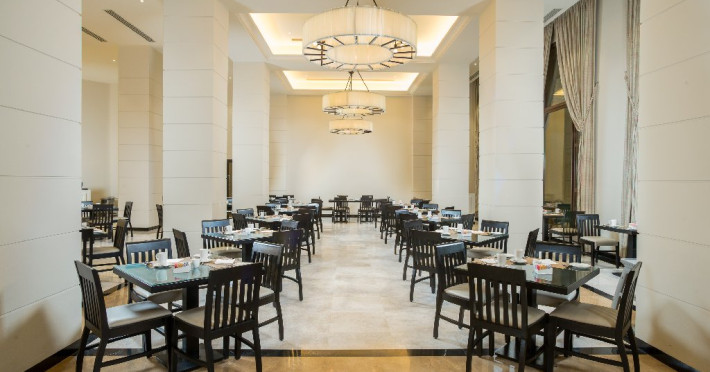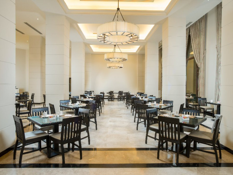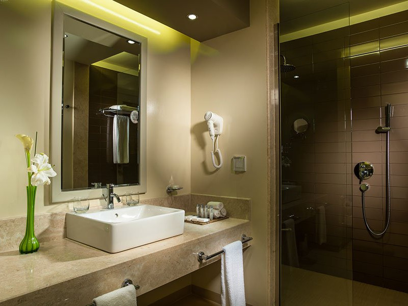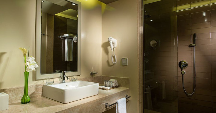 Dotari camere Camerele sunt dotate cu baie proprie cu cabina de dus, access gratuit la Wi-Fi, telefon, televizor, mini bar, seif, uscator de par, birou, aer conditionat, masa si fier de calcat (la cerere), papuci si halat de baie, precum si facilitati pentru prepararea ceaiului si cafelei.