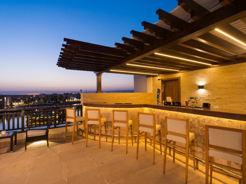 Facilitati hotel Hotelul ofera 3 piscine, dintre care una incalzita si una pentru copii, doua Jacuzzi in aer liber, 3 plaje private cu sezlonguri si umbrelute de plaja, bar pe plaja, loc de joaca pentru copii (disponibil doar pe perioada iernii), tenis de masa, sah urias, amfiteatru (200 de locuri), teren de tenis, sala de fitness, sauna, terenuri de volei, tenis si fotbal pe plaja, precum si de un centru de inchirieri destinat sporturilor pe apa (kayak, parasailing, jet ski) contra cost. Accesul la Wi-Fi este gratuit in spatiile publice, precum si in camerele hotelului. In cadrul hotelului se gasesc un exchange, servicii de depozitare a bagajelor, biblioteca si magazin de suveniruri. Pentru petrecerea timpului liber sunt recomandate centrul spa din cadrul hotelului, parcul acvatic Hawana Aqua Park situat la 1,5 km de hotel, sesiuni de snorkeling sau scuva diving, pescuit, sporturi pe apa, excursii pe munte si in desert, toate acestea avand costuri suplimentare.