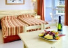 Descriere: hotelul ofera o locatie ideala pentru o vacanta relaxanta. Calitatea si varietatea serviciilor hotelului garanteaza o vacanta distractiva si relaxanta pentru turistii insotiti de prieteni si familie. Situat foarte aproape de cel mai important parc natural din insulele Baleare, parcul S'Albufera. Noaptea, se pot bucura de concerte si spectacole, inclusiv muzica live vara. Localizare: 80 metri de plaja, 60km fata de aeroport. Dotari camere: hotelul dispune de 252 camere si apartamente, dotate cu: aer conditionat, telefon, televizor, baie cu dus, balcon, seif contra cost.Camera dubla: cu aceleasi dotari de mai sus; Apartamentul: format din 1 dormitor cu pat dublu, living cu canapea extensibila, baie cu dus, terasa si chicineta complet echipata, frigider si seif contra cost. Facilitati hotel: receptie, restaurant, bar, camera de bagaje, aer conditionat, terasa, sauna, sala de fitness, teren de golf (la 3 km distant), masaj (contra cost), teren de joaca pentru copii, tenis de masa, scufundari, calorie, piscina exterioara si interioara, spalatorie, schimb valutar, inchiriere biciclete, inchiriere auto, internet prin cablu in zonele publice (contra cost). Plaja: cu nisip fin, sezlongurile si umbrelele sunt constra cost. www.gardenhotels.com Alte informatii: Pentru statiunile din nord si est, transferul inclus in pachet este tip shuttle cu timp de asteptare aproximativ o ora. La cerere si contra cost se poate opta pentru transfer privat. Asistenta turistica este telefonica pentru un numar de pasageri mai mic de 20 de persoane. Excursii optionale de grup nu se pot organiza cu plecare din statiunile din zonele nord si est!