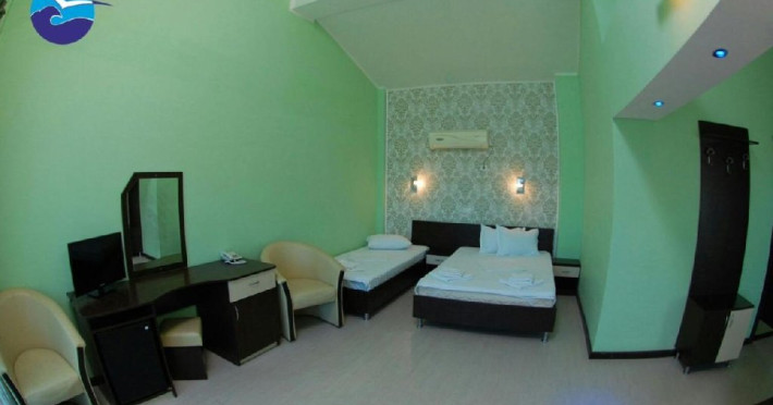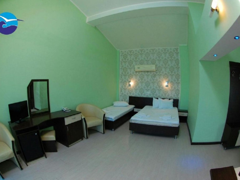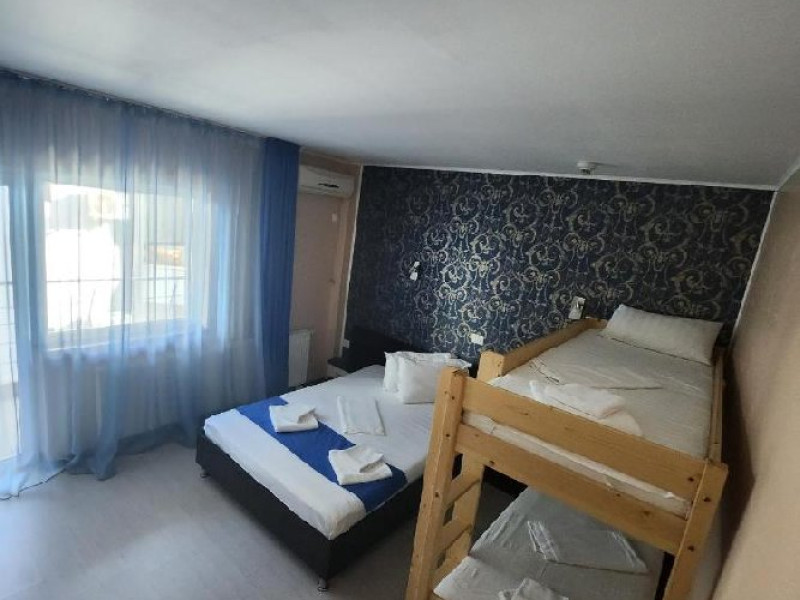Dotari camere: Camerele duble dispun de pat matrimonial (160x200) sau doua paturi twin (90x200), aer conditionat, racitor, wi fi, LCD tv, plase de tantari, baie cu cabina de dus si uscator de par. Camerele duble twin nu dispun de balcon. Cele matrimoniale au balcon. Camerele duble twin au 19 mp, in timp ce camerele matrimoniale au 18 mp. Camera double suite se compune dintr-un open space cu zona de living cu canapea extensibila si zona de dormit cu un pat matrimonial (140x200) si un pat single (90x200), 2 balcoane, baie cu cabina de dus si uscator de par. Dispune de aer conditionat, racitor, wi fi, LCD tv, plase de tantari si este situata la etajul 3. Suprafata 35 mp. Camerele triple dispun de pat matrimonial (140x200) si un pat single (90x200), aer conditionat, racitor, wi fi, LCD tv, plase de tantari, baie cu cabina de dus si uscator de par. Unele camere au balcon. Suprafata 18 mp. Camerele de familie dispun de pat matrimonial (140x200) si un pat supraetajat (80x190), aer conditionat, racitor, wi fi, LCD tv, plase de tantari, baie cu cabina de dus si uscator de par. Au balcon. Suprafata 18 mp.