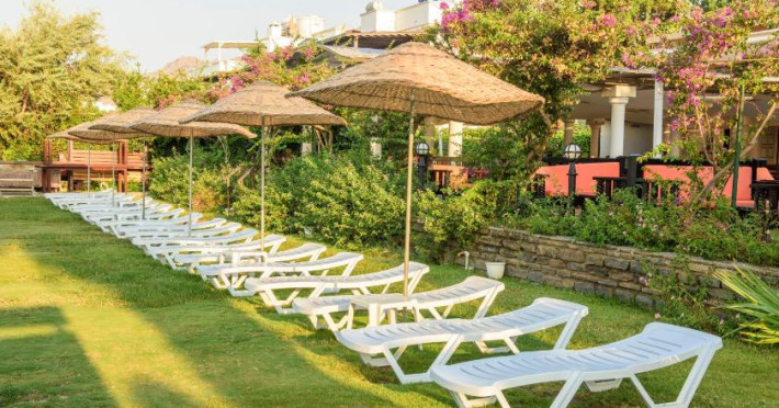 The apartment hotel is situated amidst picturesque gardens. The beach is 200 m from the hotel. Links to the transport network are close at hand. A golf course is located 5 km away, whilst the town is 9 km from the hotel.||This hotel comprises a total of 40 studies spread over 3 floors. It also has a mini bar with entertainment area, TV room, billiards (fee), Internet access (fee).||The functional apartments come with a bathroom with shower, a combined living room/bedroom and TV. Besides air conditioning and terrace overlooking the pool. A washing machine, microwave, refrigerator and utensils.||There is a heart-shaped swimming pool with sun terrace, sun loungers and garden area.