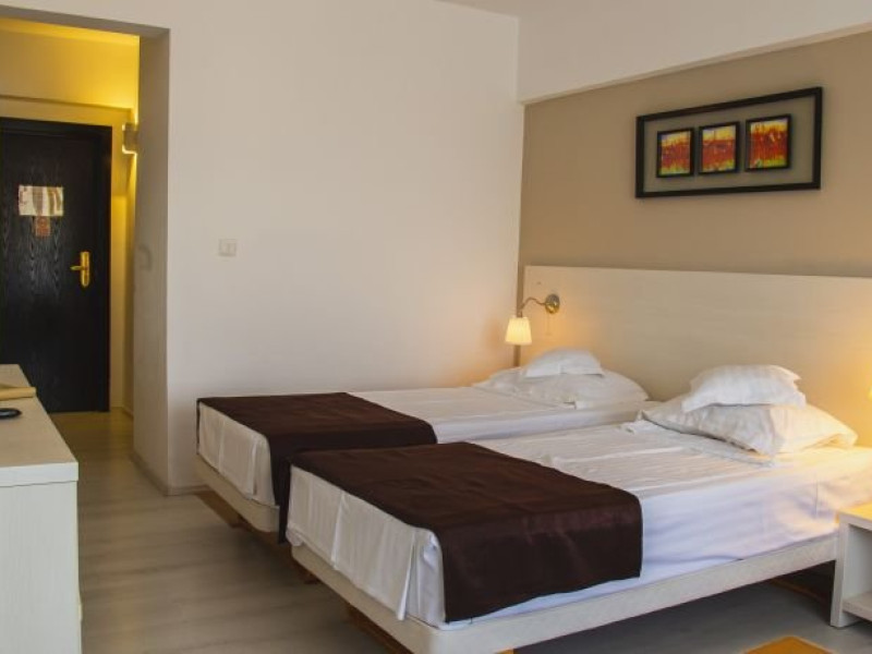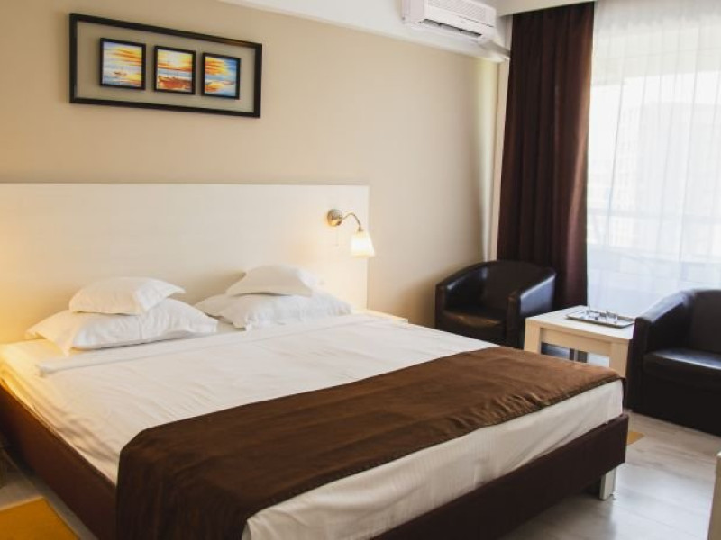 Amplasat in nordul statiunii Mamaia, intr-o zona linistita la numai 50 m de plaja, Hotel Ambasador Mamaia ofera tuturor oaspetilor posibilitatea de a petrecere o vacanta relaxanta la malul marii Negre. Serviciile de calitate, experienta indelungata si atentia personalului nostru contureaza minunat vacanta dumneavoastra de vis, fie ca alegeti un sejur all inclusive sau doar unul cu mic dejun! Descriere camere: Dubla lake view/twin lake view: Este o camera de 24 matri patrati cu un pat King Size, cu vedere la lac. Dubla sea view/Dubla twin sea view: O camera de 24 metri patrati cu pat King Size si cu vedere spre mare. Dubla superioara cu vedere la lac: O camera de 24 metri patrati cu pat King Size si cu vedere spre mare. Dubla superioara cu vedere la mare: Este o camera de 30 metri patrati care contine un pat Queen Size si o canapea extensibila, care va ofera o vedere de ansamblu catre mare. Juniorsuite: O camera spatioasa de 40 metri patrati cu o zona pentru dormit cu un pat King Size si o zona de living cu o canapea extensibila in care pot dormi doua persoane. Toate camerele Junior Suite au balcon cu vedere la mare.. Suita superioara: Senior Suite este compus din dormitor cu pat King Size, un living spatios prevazut cu un coltar extensibil, o baie principala cu cada si chiuveta, un WC de serviciu, un balcon si o terasa cu vedere frontala la mare, 46 mp. Facilitati hotel: Parcare gratuita, acces wifi gratuit, RecepÅ£ie 24 de ore, Restaurant, Bar, Mic dejun, CamerÄ de bagaje, Fumatul interzis în toate spaÅ£iile publice Åi private, Camere nefumÄtori, Camere pentru Familii, Seif, Lift, TerasÄ, GrÄdinÄ, Plaja Privata.