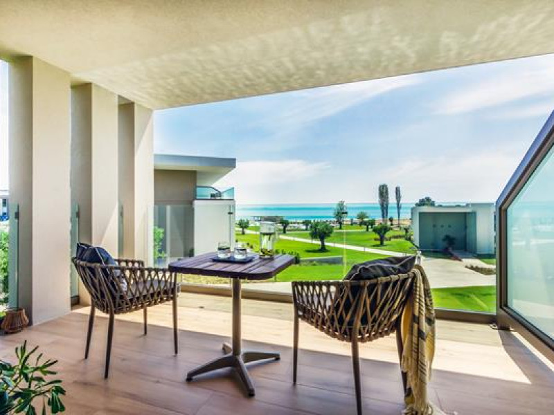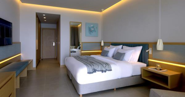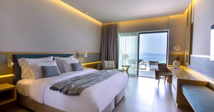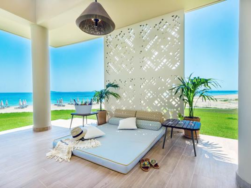 The hotel is located on the beach of Agios Ioannis, famous for its