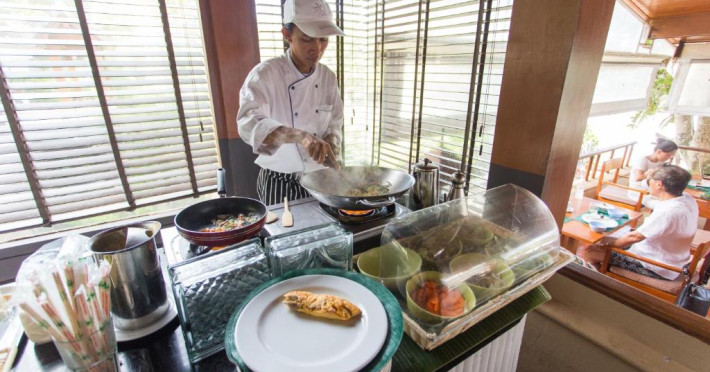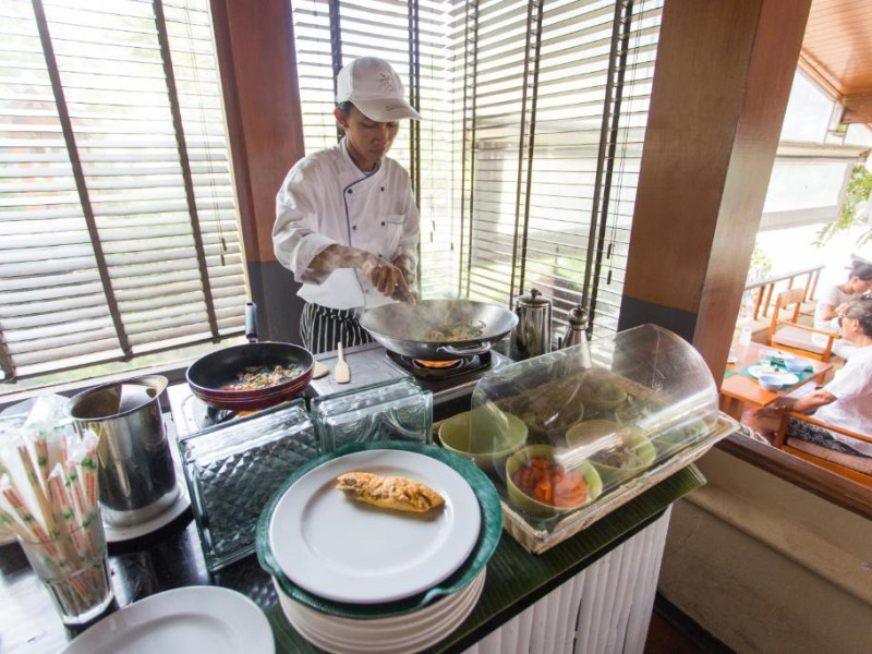 Restaurantul thailandez Tom Yam servește mancăruri locale, iar Mareblu' Ristorante oferă preparate occidentale. Băuturi pot fi savurate la restaurant si la barul Coconut.
