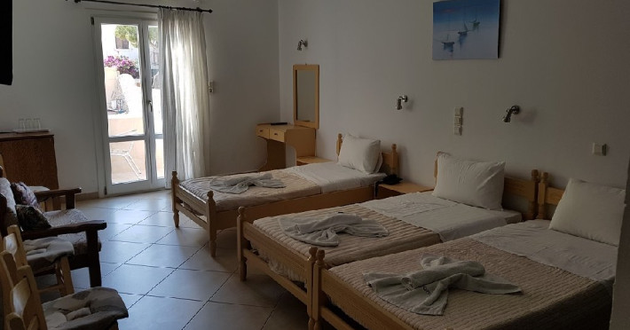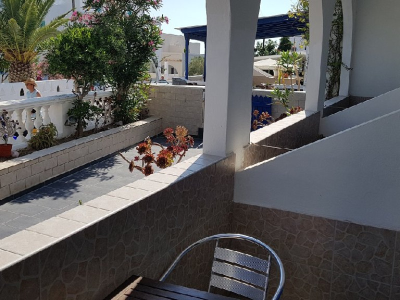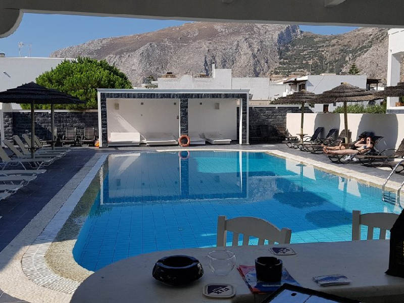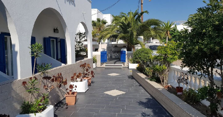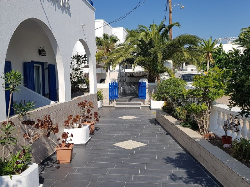 Plaja: plaja este la 30 m si este cu nisip vulcanic, specific insulei Santorini.