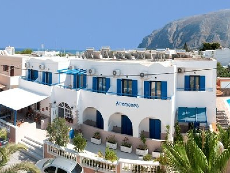 Descriere: Hotelul Anemones este situat in una din cele mai animate si mai populare statiuni din Santorini, Kamari. Plaja se afla la doar 30 m distanta de hotel. Atmosfera este una familiara, avand in vedere ca hotelul are doar 25 camere dispuse pe doua etaje.