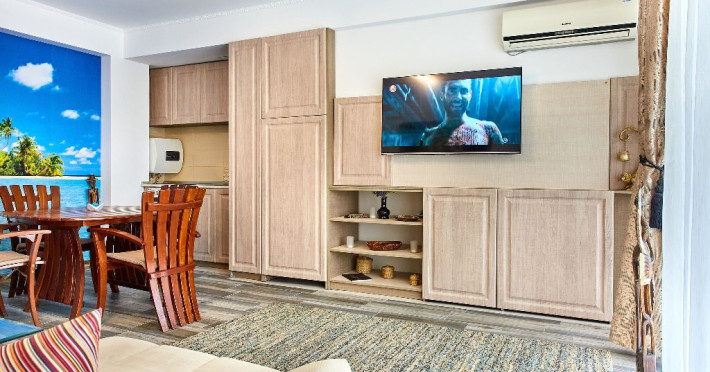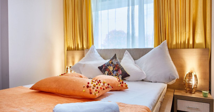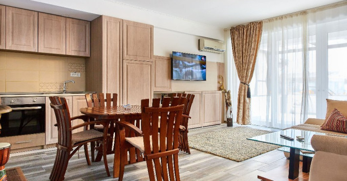 Apartamente sunt formate din 2 camere, dormitor + living si au 62 mp. Capacitatea maxima 4 adulti + 1 copil 9.99 ani.
