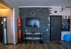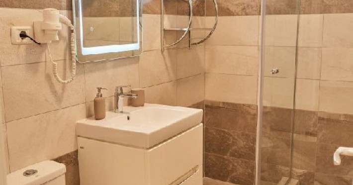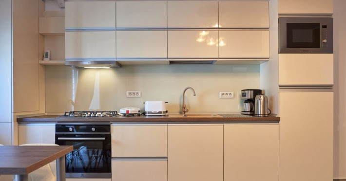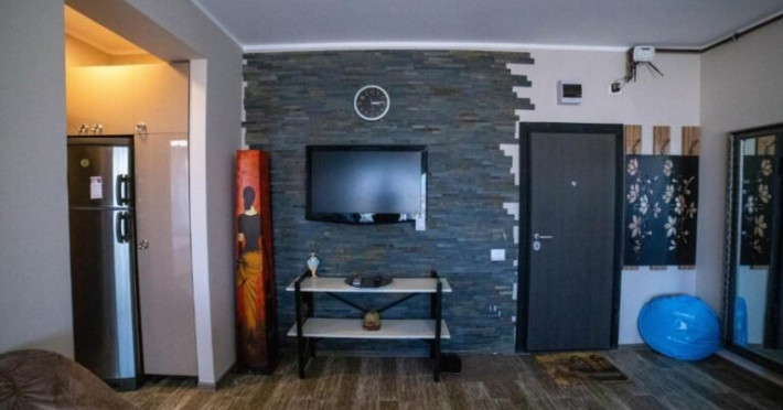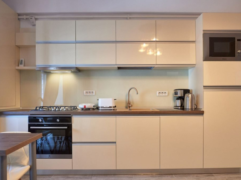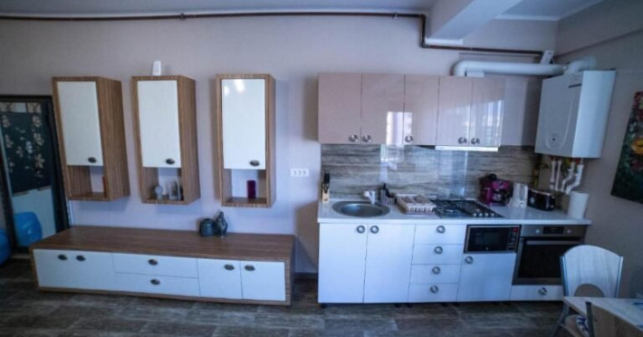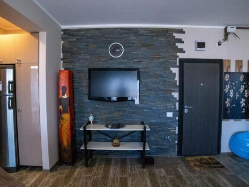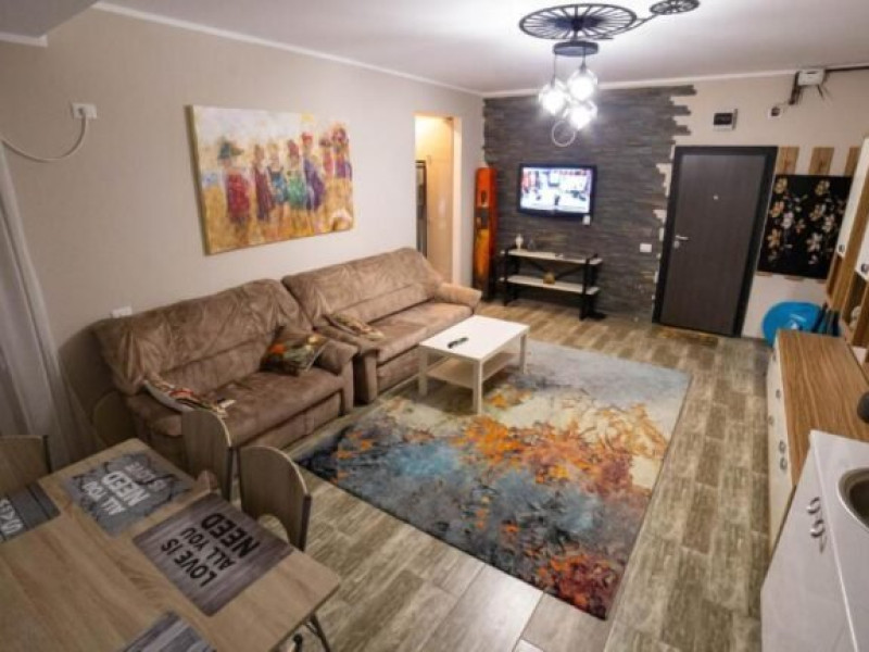 este compus din living cu canapea extensibila, dormitor cu pat matrimonial, buctrie complet utilat, echipat cu plit, hot, aparat de cafea,prajitor de paine, fierbtor si frigider, baie cu dus walk-in, tv, aer conditionat. Adresa: strada Prelungirea D12 nr 8-10, Bl 1, etaj 5.
