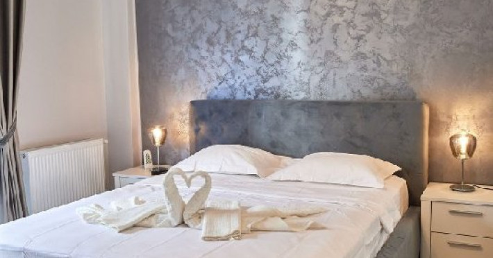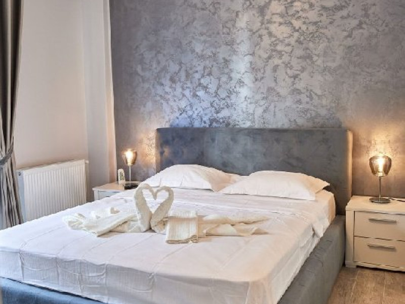 Apartament Roberto Deluxe este compus din living cu canapea extensibila, dormitor cu pat matrimonial, buctrie complet utilat, echipat cu plit, hot, aparat de cafea,prajitor de paine, fierbtor si frigider, baie cu dus walk-in, tv, aer conditionat, balcon mobilat.Adresa: Prelungirea D12 nr.8-10 , bl 3.