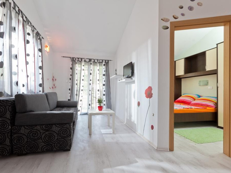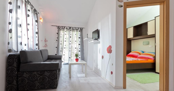 Aprtamentele Alma se afla in statiunea Podgora, la 500 metri fata de plaja. Centrul statiunii cu restaurante si magazine se afla la 300 metri. Ideale pentru familii si prieteni apartamentele sunt cu vedere partiala la mare si sunt dotate cu chicineta (cuptor microunde, frigider, plita, vesela, masa si scaune), tv satelit, internet wireless (fara plata), aer conditionat, toaleta cu dus, living room cu sofa si dormitor cu pat dublu, balcon.
