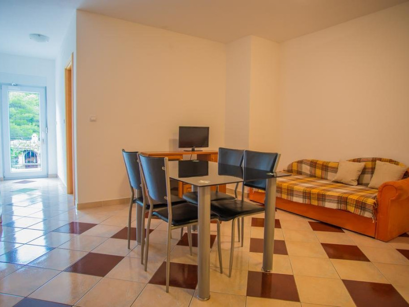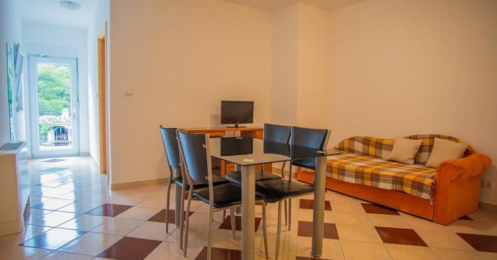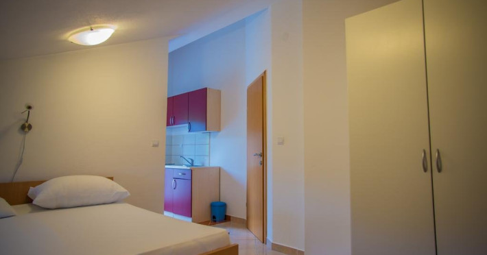 Complexul de apartamente este localizat in Promajna, la 5 minute de condus de Baska Voda si la 15 minute de Makarska ofera un loc linistit pentru petrecerea vacantei. Plaja este la 400 metri dar complexul are si piscina.Studiourile au 20mp si includ o chicineta mica, masa pentru servit, pat dublu, lenjerie si prosoape, baie cu dus, internet wifi, tv satelit, aer conditionat, parcare. Apartamentele au 40 mp, au aceleasi dotari dar in plus au o canapea.