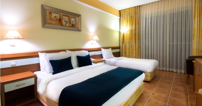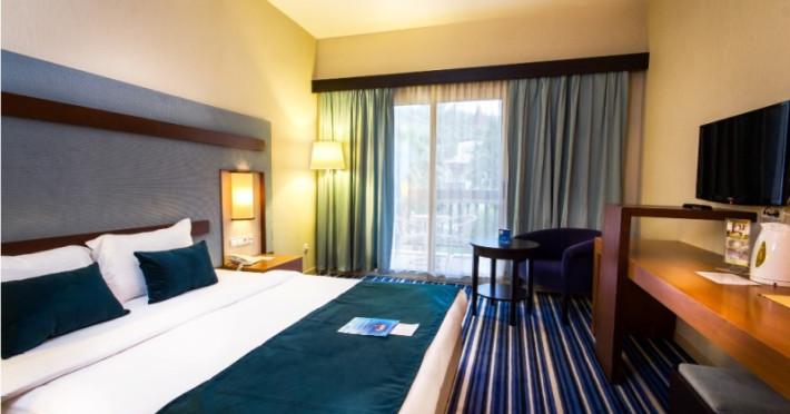 Camerele sunt dotate cu baie cu dus sau cadă, uscator de par, halat și papuci, aer condiționat centralizat, televizor, telefon, mini bar (contra cost), seif (contra cost), pardoseală cu mochetă sau gresie, balcon, servicii curățenie în camere – zilnic.