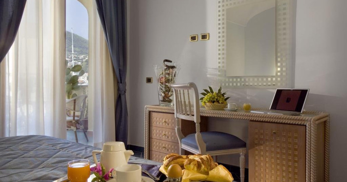Descriere: Hotelul Aragona Palace 4* este o adevarata oaza de relaxare oferind turistilor servicii de spa pentru un rasfat complet si avantajul de a fi aproape de plaja. Localizare: hotelul este situat central in Ischia, aproape de port si de plajele Eroilor si Engleza.Parcul termal Castiglione este in apropiere Dotari camere: camere spatioase, modern mobilate si cu design mediteraneanm fiecare cu :baie privata, TV satelit, mini-frigider, seif, aer conditionat, telefon. Facilitati: piscina interioara, centru spa cu jacuzzi,cromoterapie,hamam,piscina exterioara Plaja: la 3 minute de hotel Web: http://www.hotelaragona.it/en