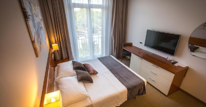 Localizare: Hotel Arena Holiday este situat in statiunea Medulin, la 200 m distanta de plaja cu pietris si la 11 km de centrul orasului Pula. Facilitati hotel: receptie, A/C, Wi-Fi, camera de bagaje, schimb valutar, bar, restaurant, bar la piscina, loc de joaca, spalatorie, lounge, lift, room service, rent a car, piscina exterioara, piscina pentru copii, terasa, gradina, parcare publica, activitati la plaja, sala de conferinte. Facilitati camere: A/C, telefon, TV, seif, pat matrimonial, canapea, baie cu dus si uscator de par. Capacitate maxima: 2 adulti + 1 copil. Pagina web: https://www.arenahotels.com/en/hotel/hotel-holiday