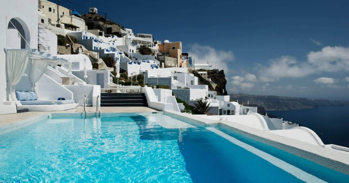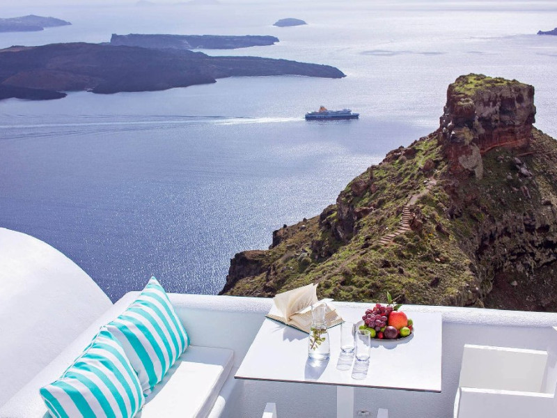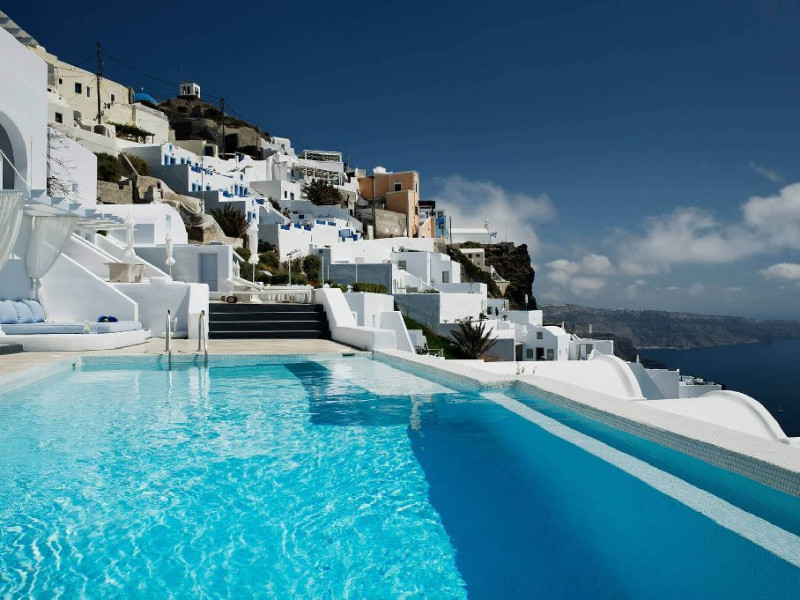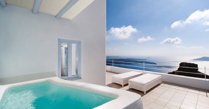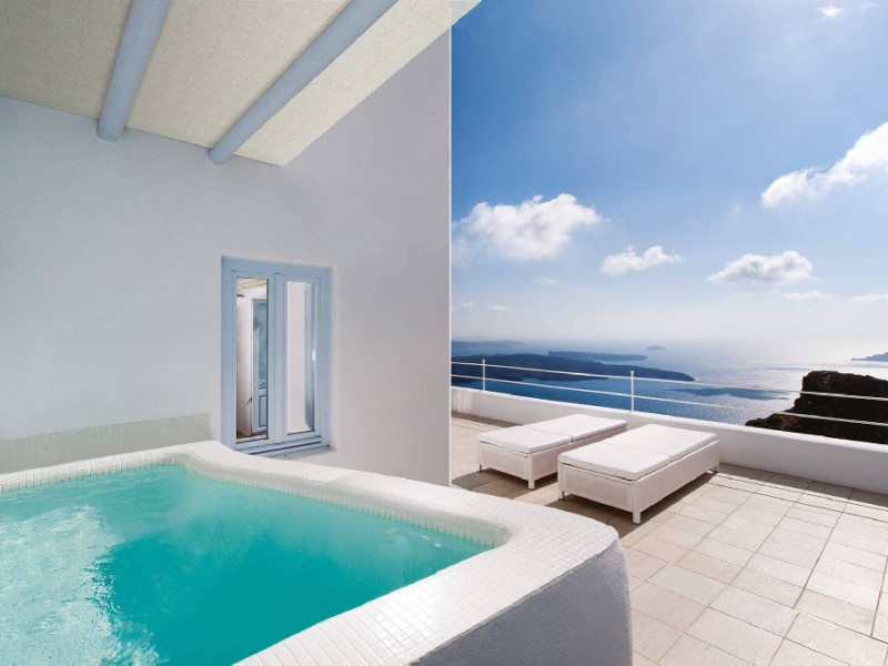 Descriere: Hotelul Astra Suites este situat pe stancile calderei din Imerovigli, oferind o panorama superba asupra calderei si Marii Egee. Construit in stilul unui sat cicladic traditional, hotelul a fost ales ca fiind unul dintre cele mai bune 25 hoteluri din lume, conform membrilor Trip Advisor, fiind recunoscut pentru serviciile de o calitate exceptionala.