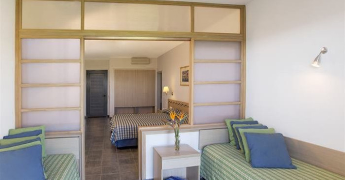 Camerele: camerele standard au o capacitate maxima de 2 persoane si sunt echipate cu: aer conditionat, balcon sau terasa, telefon ( cu plata ), uscator de par, frigider, facilitati pt preparare cafea/ceai, seif (cu plata, 20 euro/sapt)), TV satelit. Camerele family (aprox. 29 m2) au o capacitate maxima de 4 persoane si au aceleasi facilitati ca si camerele standard.