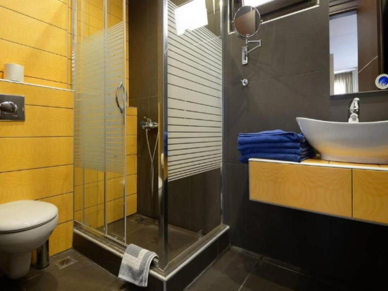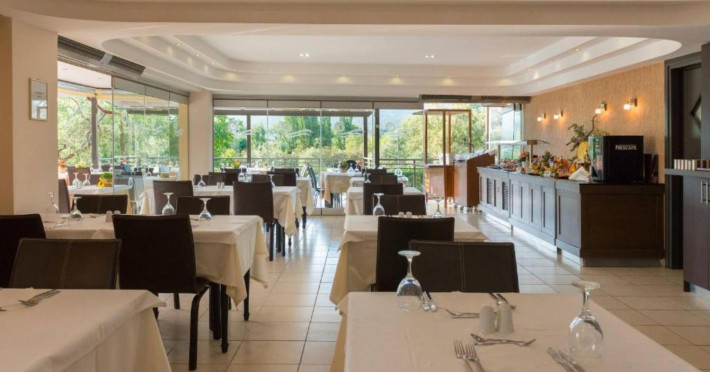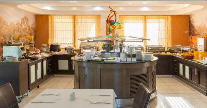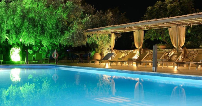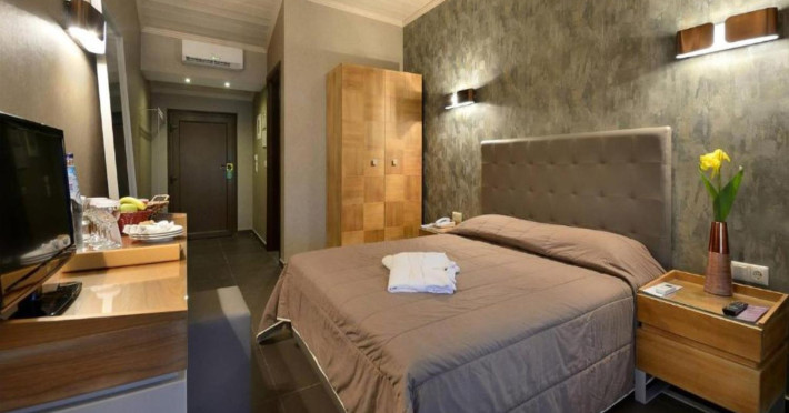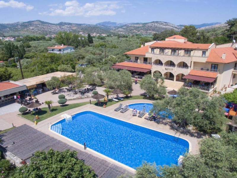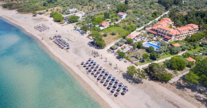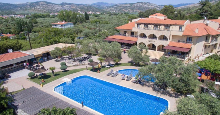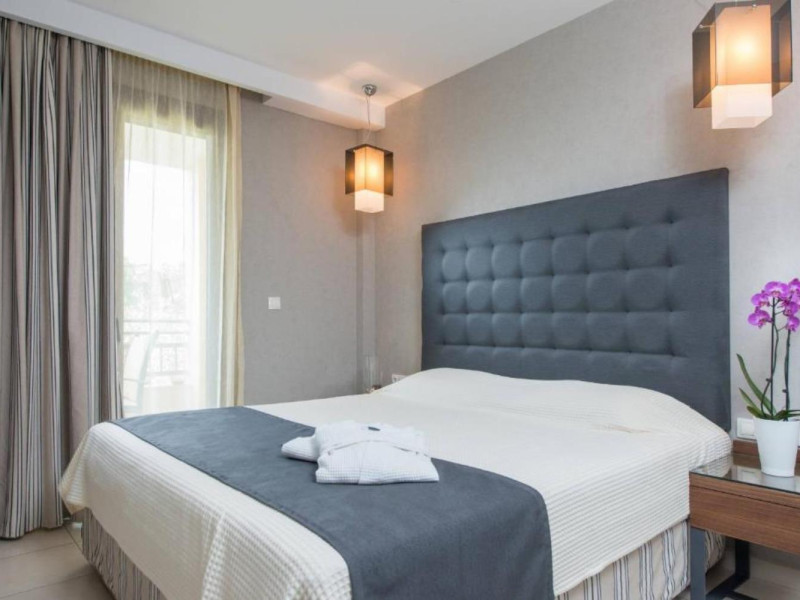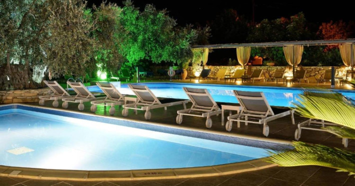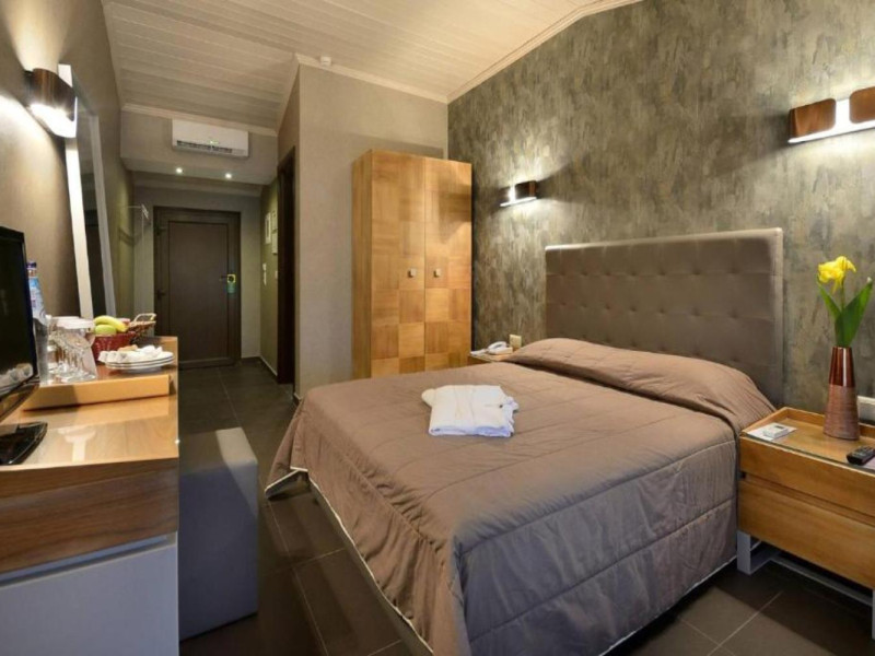 44 Rooms, Suites and Maisonettes, an Outdoor pool with separate Kids pool, Buffet restaurant, A la carte well known Taverna, a Pool Bar, Parking spaces, Elevator, Lushing Gardens, Beach, Conference Room (82 seats), Fitness & Wellness Center, Kids corner, Lobby/Lounge area ,Internet corner among impeccable services.