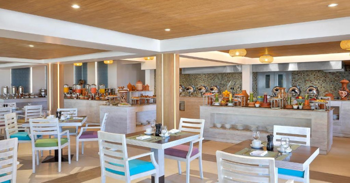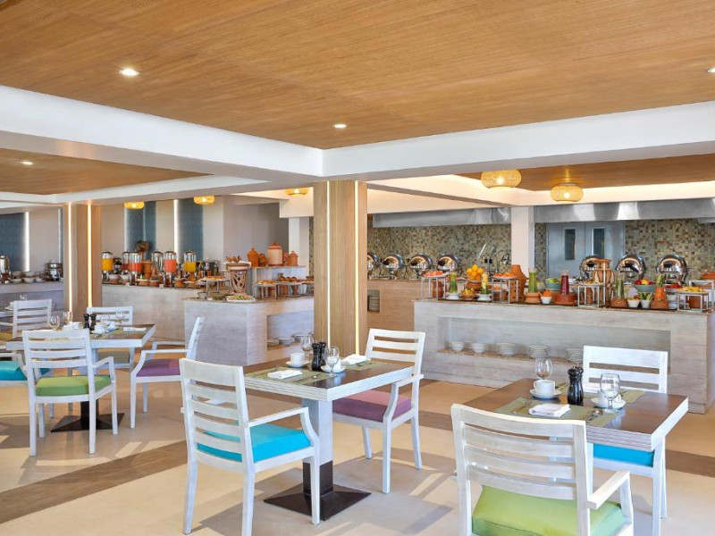 Micul dejun tip bufet este servit la hotel. Cele două restaurante servesc preparate locale, occidentale și asiatice. Băuturile pot fi savurate la cele 2 baruri ale complexului.