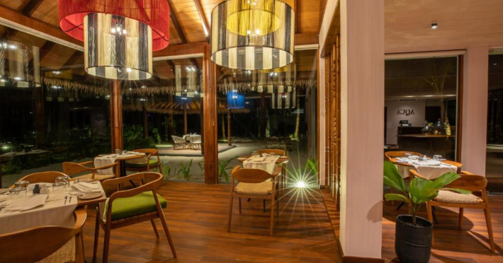 Proprietatea servește zilnic un mic dejun tip bufet, continental sau englezesc/irlandez complet. Barceló Whale Lagoon Maldives are un restaurant care servește preparate din bucătăria mediteraneană, fructe de mare și steakhouse.