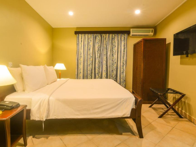 Camerele și vilele sunt decorate in nuanțe calde și dispun de balcoane sau terase private cu vedere spre grădina tropicală sau Oceanul Indian. Oaspeții se pot bucura de piscina infinity cu vedere panoramică spre ocean, precum și de restaurantul principal care servește specialități creole și internaționale.