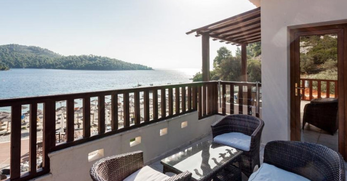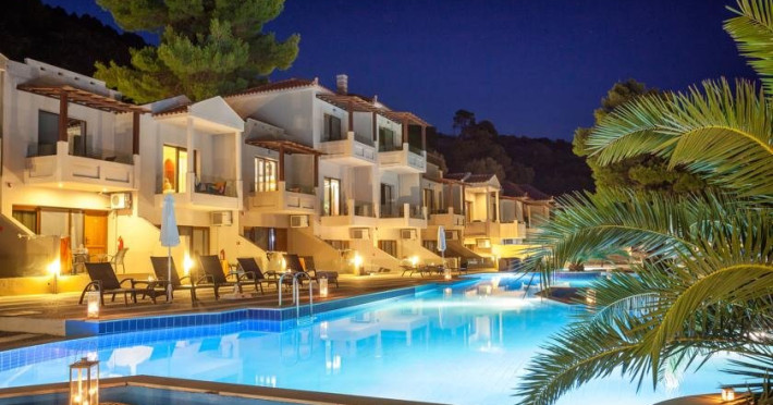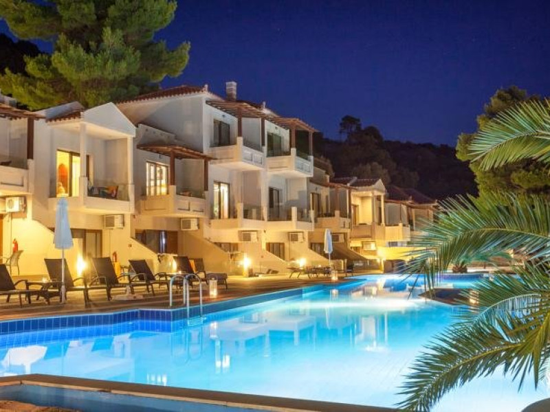 Descriere: Hotelul Blue Green Bay este inconjurata de o padure de pini aflata chiar pe plaja cu nisip Panormos si pune la dispozitie o piscina cu bar si un restaurant. Unitatile de cazare sunt mobilate cu gust si ofera balcon cu vedere la piscina si la Marea Egee. Localizare: Portul si orasul principal al insulei Skopelos sunt situate la 16 km. Blue Green Bay se afla la 600 m de plaja Milia si la 2 km de plaja Kastani. Dotari camere: aer conditionat, TV LCD, minifrigider, uscator de par, chicineta (unele camere) Facilitati hotel: piscina, bar la piscina, restaurant, sezlonguri, umbrele, plaja cu steag albastru, parcare gratuita Website: www.bluegreenbay.gr