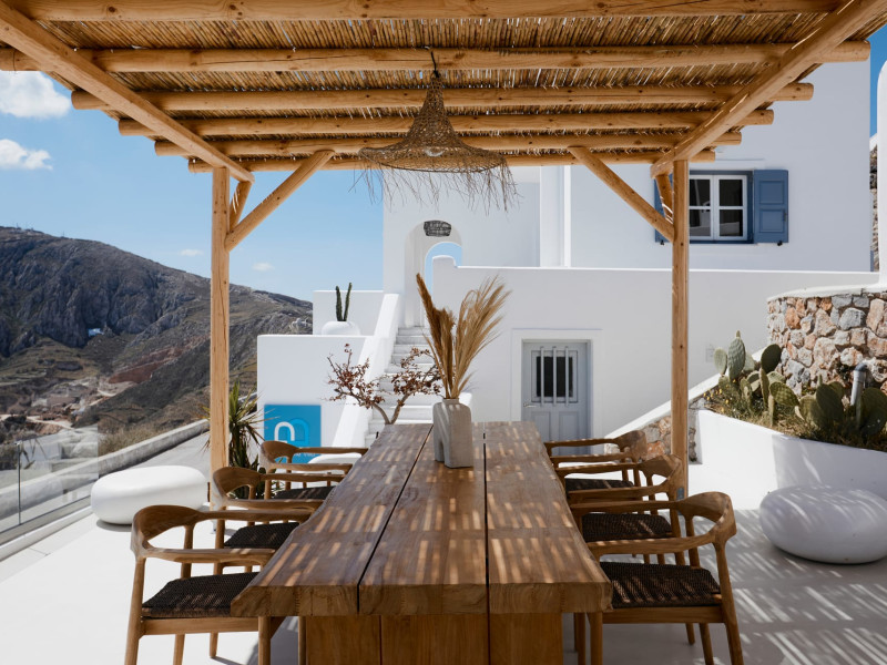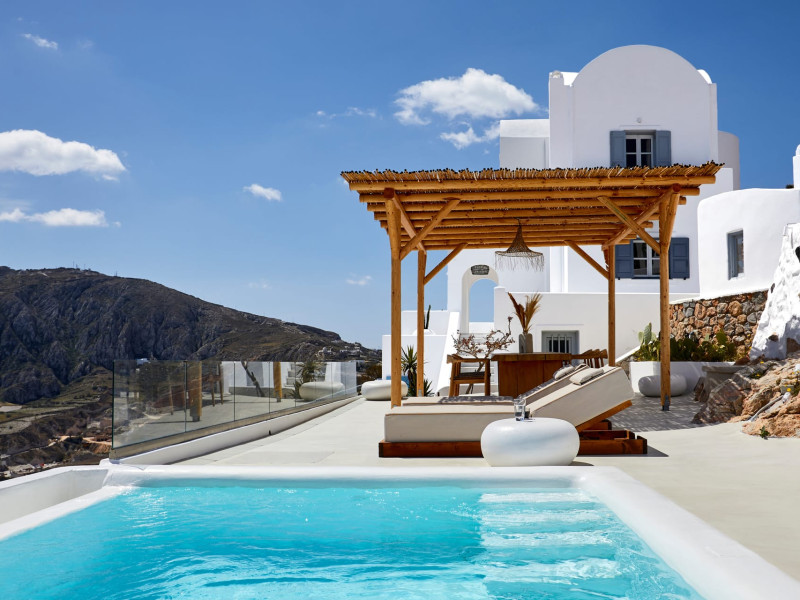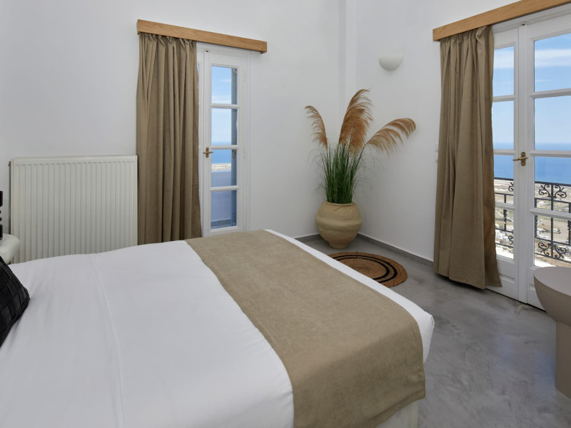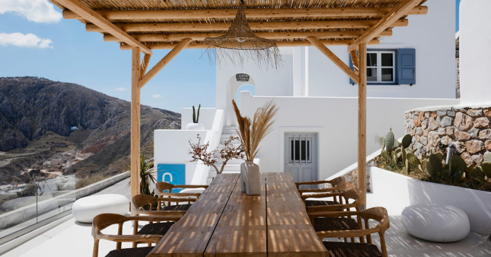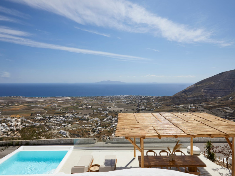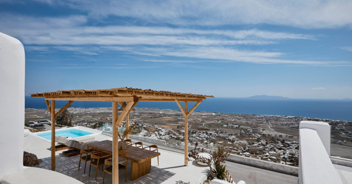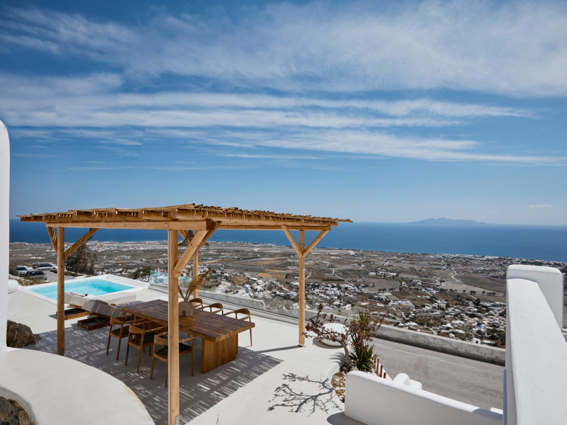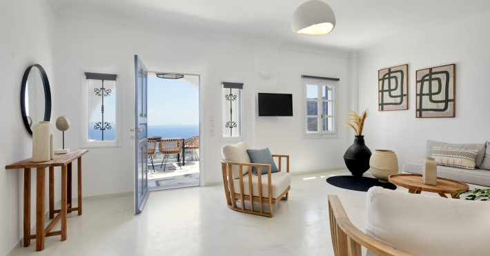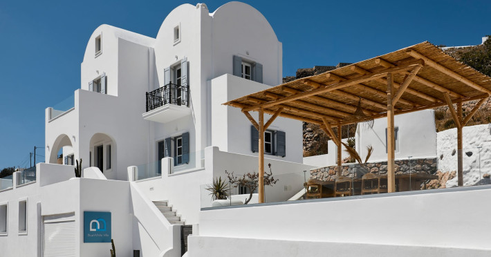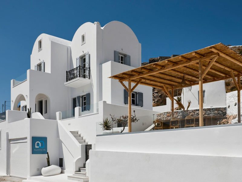 Located in the highest point of Santorini, in Pyrgos Kallistis village with Kasteli castle, our villa possesses the significant privilege of both city and sea view.The Blue White Villa and the Aurora Suite are a perfect combination of comfort, luxury, and unrivaled Cycladic architecture with a modern touch.Blue White Villa is designed with cozy interior spaces and it's the ideal place for a stay full of tranquility. A private pool in the villa and an outdoor hot tub in the Aurora suite give you this relaxation sense you need for your holidays.Spend your days here away from the bustling town and experience the privacy you need to live your summer vacation to its fullest.