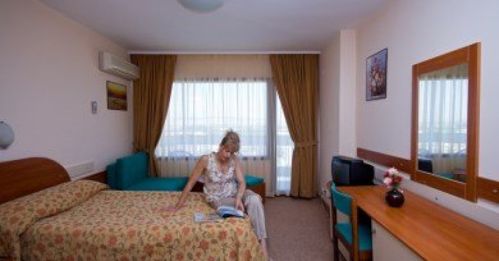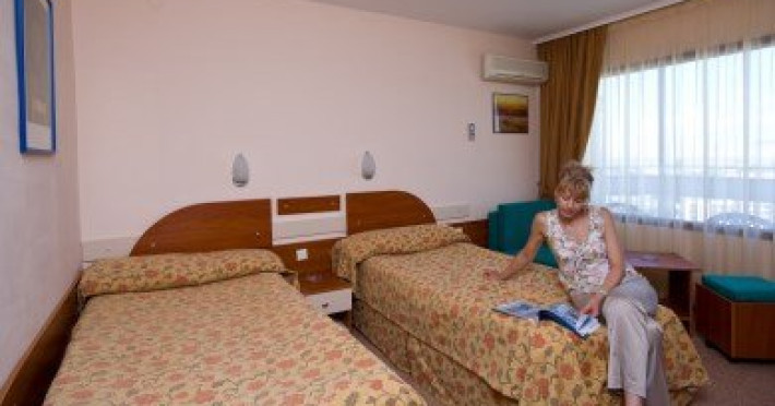 camere Capacitatea hotelului este: 6 apartamente si 250 camere. Burgas Beach Hotel ofera o varietate de camere duble de hotel perfecte pentru vacanta de vara. Fiecare camera dubla este mobilata cu doua paturi, dus, toaleta, frigider, TV prin satelit, telefon.