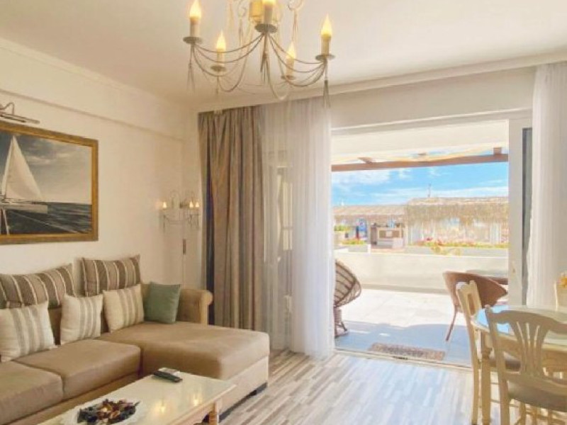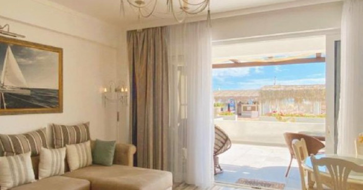 Dotari Camere Apartamentele sunt dotate cu tot ce ai nevoie pentru o vacanta fara griji: aer conditionat, incalzire in pardoseala, WiFi, Televizor, uscator de par, meniu de perne si dotari hoteliere standard cum ar fi prosoape de baie si de plaja, halate, papuci si articole de toaleta.
