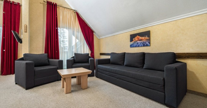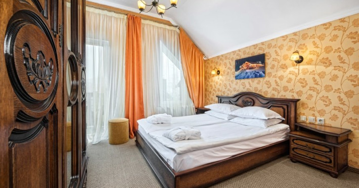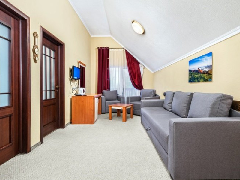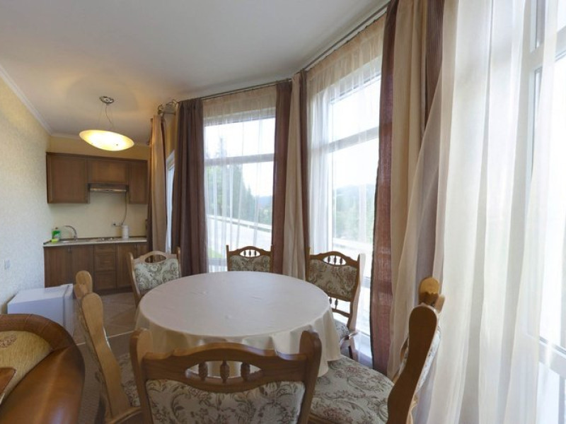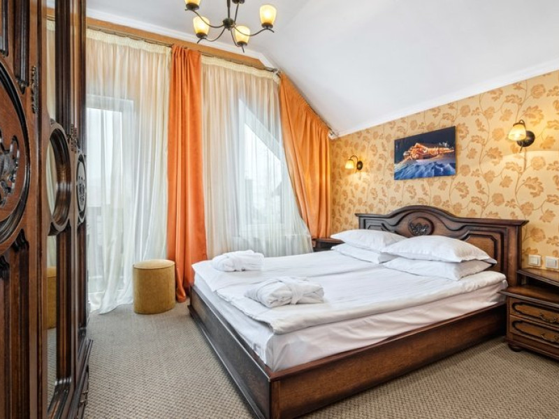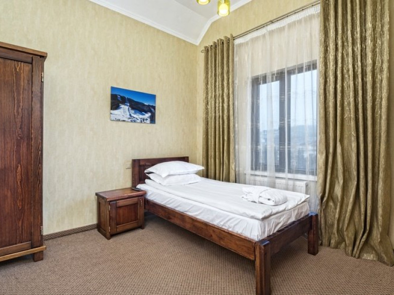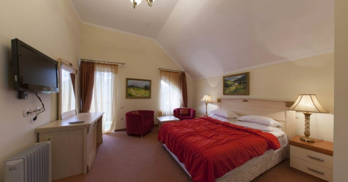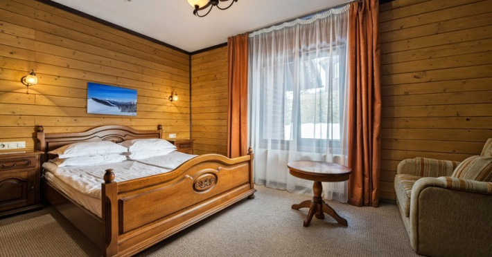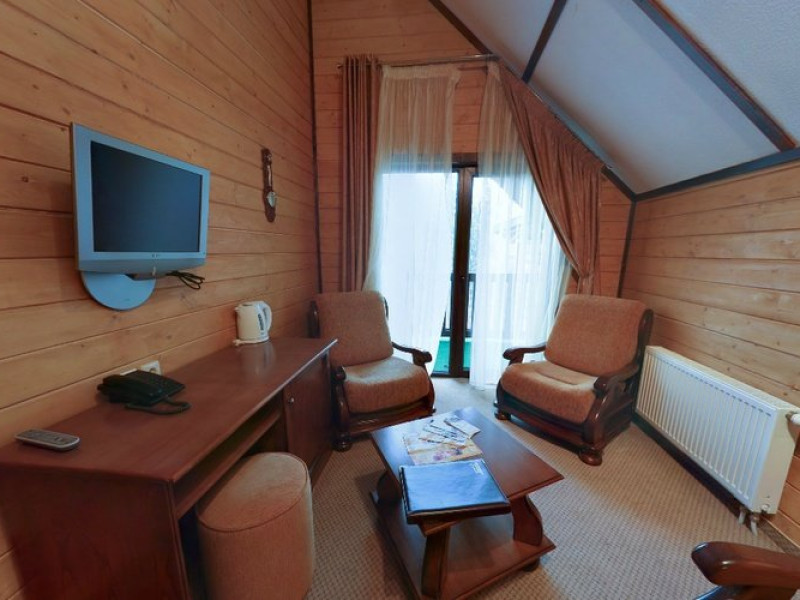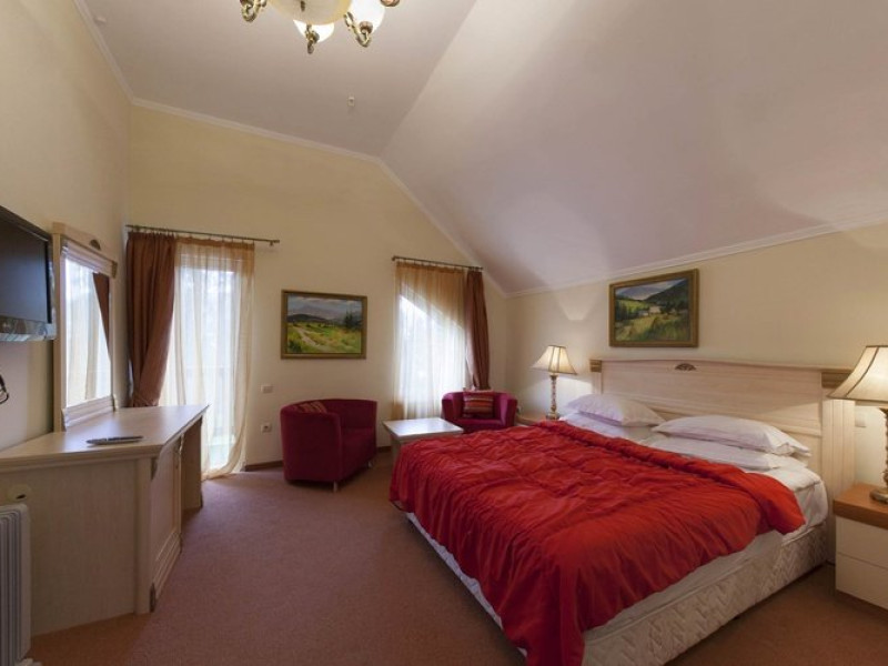 Localizare: In centrul statiunii bukovel, inconjurat de partiile de ski. Descriere: Bukovel Resort este format din cabane confortabile din lemn cu doua etaje situate in inima statiunii. Este combinatia unica dintre confortul maxim, calitatea inalta a serviciilor, natura intacta si aerul montan. Personalul hotelului experimentat va ofera o calitate maxima a serviciilor. Facilitati hotel: Internet, Wi-Fi, Plaja (Lacul) - sezonier (vara), Spa si centru de wellness, centru de fitness, inchiriere de biciclete si echipament de schi, ATM/bancomat, receptie deschisa 24 de ore, camera pentru depozitare bagaje, minimarket, supermarket, magazin de articole sportive, farmacie, sauna, salon de bronzare, biliard, loc de joaca pentru copii, parcare, room service, restaurant, parcare. Dotari camere: Dubla Economy: minibar (se achita suplimentar la hotel), incalzire centralizata, ceainic, uscator de par, baie cu cabina de dus. Dubla Economy +: TV cu ecran plat, minibar (se achita suplimentar la hotel), incalzire centralizata, ceainic, uscator de par, baie cu cabina de dus. Dubla Semi-Suite +: TV cu ecran plat, minibar (se achita suplimentar la hotel), incalzire centralizata, ceainic, uscator de par, baie cu cabina de dus. Tripla Semi-Suite: TV, minibar (se achita suplimentar la hotel), incalzire centralizata, ceainic, uscator de par, baie cu cabina de dus. Dubla Semi-Suite NEW: TV cu ecran plat, minibar (se achita suplimentar la hotel), seif (contra cost), incalzire centralizata, ceainic, uscator de par, produse cosmetice, baie cu cabina de dus. Tripla Semi-Suite NEW: TV cu ecran plat, minibar (se achita suplimentar la hotel), incalzire centralizata, ceainic, uscator de par, produse cosmetice, baie cu cabina de dus. Suite: TV cu ecran plat, minibar (se achita suplimentar la hotel), s incalzire centralizata, ceainic, uscator de par, produse cosmetice, halat si papuci, baie cu cada. Superior Suite: TV cu ecran plat, minibar (se achita suplimentar la hotel), seif (contra cost), incalzire centralizata, ceainic, uscator de par, produse cosmetice, halat si papuci, cada SPA, baie cu dus. Superior Suite +: TV cu ecran plat, minibar (se achita suplimentar la hotel), seif (contra cost), incalzire centralizata, ceainic, uscator de par, produse cosmetice, halat si papuci, cada SPA, baie cu dus. Chalet Superior: TV cu ecran plat, minibar (se achita suplimentar la hotel), seif (contra cost), incalzire centralizata, semineu, chicineta complet utilata, ceainic, sauna, mini-piscina interioara, uscator de par, produse cosmetice, halat si papuci, cada SPA, baie cu dus, garaj. Chalet Deluxe: TV cu ecran plat, minibar (se achita suplimentar la hotel), seif (contra cost), incalzire centralizata, semineu, chicineta complet utilata, ceainic, sauna, mini-piscina interioara, uscator de par, produse cosmetice, halat si papuci, cada SPA, baie cu dus, garaj. Villa Chalet: TV cu ecran plat, minibar (se achita suplimentar la hotel), seif (contra cost), incalzire centralizata, semineu, chicineta complet utilata, ceainic, sauna, mini-piscina interioara, masina de spalat, uscator de par, produse cosmetice, halat si papuci, cada SPA, baie cu dus, garaj. Villa Premier: TV cu ecran plat, minibar (se achita suplimentar la hotel), seif (contra cost), incalzire centralizata, semineu, chicineta complet utilata, ceainic, sauna, mini-piscina interioara, masina de spalat, uscator de par, produse cosmetice, halat si papuci, cada SPA, baie cu dus, garaj, terasa. Web: www.reserve.bukovel.com/bukovel