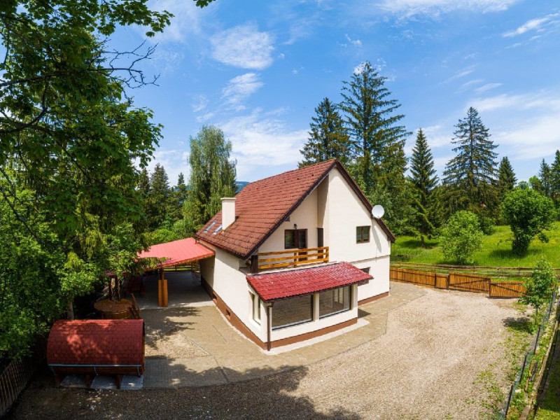 Cabana Alba din localitatea Izvorul Muresului, judetul Harghita, dispune de 6 camere duble, living cu canapea extensibila, 5 bai, bucatarie complet utilata, ciubar si sauna, putand caza 14 persoane. Se inchiriaza doar integral.