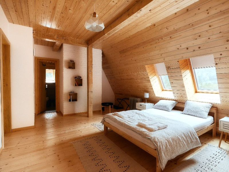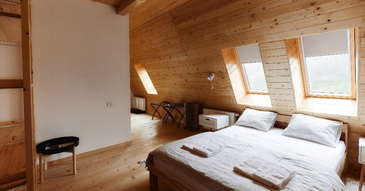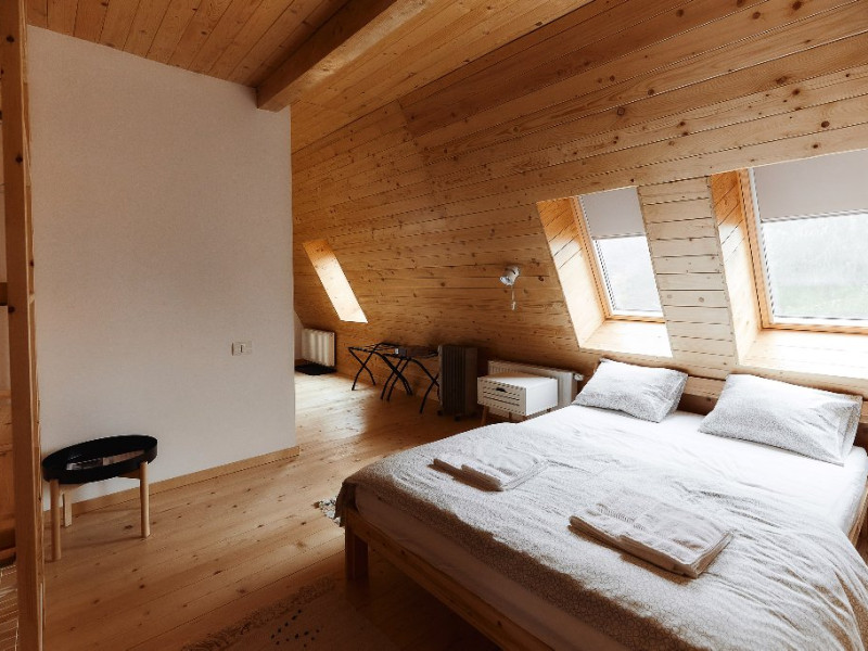 Cabana Geo, situata intre partiile de ski din statiunea montana Cavnic, este o locatie potrivita atat iarna cat si vara. Locatia are 5 camere cu baie proprie, dintre care 3 camere triple si 2 camere duble, putand caza pana la 13 adulti si 4 copii. Camera Melomanului: situata la parter, accesibila persoanelor cu dizabilitati, dispune de un pat dublu, zona de bucatarie cu loc de luat masa, baie proprie si acces direct in curte. Camera Cabanierului: situata la primul nivel, dispune de o zona de living cu geamuri imense si panorama asupra padurii, baie proprie, canapea extensibila si pat dublu. Camera Artistului: situata la etajul 1, are geam in forma de triunghi, pat dublu din care dimineata vedeti direct padurea, dispune de baie proprie si o zona cu 2 paturi supraetajate, cele doua zone nu sunt despartite de usa. Camera Drumetului: situata la etajul 1, dispune de un pat dublu, baie proprie, geamuri tip mansarda prin care puteti admira cerul direct din pat. Camera Schiorului: situata la etajul 1, dispune de un pat dublu, baie proprie si o zona cu 2 paturi supraetajate. La primul nivel este si bucataria, livingul cu semineu si loc de luat masa. La parter sauna uscata cu iesire direct la dusul cu apa rece, tot la parter jacuzzi cu zona de relaxare pe sezlonguri si multa liniste, fiind ascunsa in padure, la aproximativ 800 metri de drum. Foisor si gratar in curte si un izvor cu o moara de apa situat pe teritoriul proprietatii. Cabana pune la dispozitie si un spatiu unde se pot depozita skiurile si claparii. Cabana se inchiriaza doar integral.