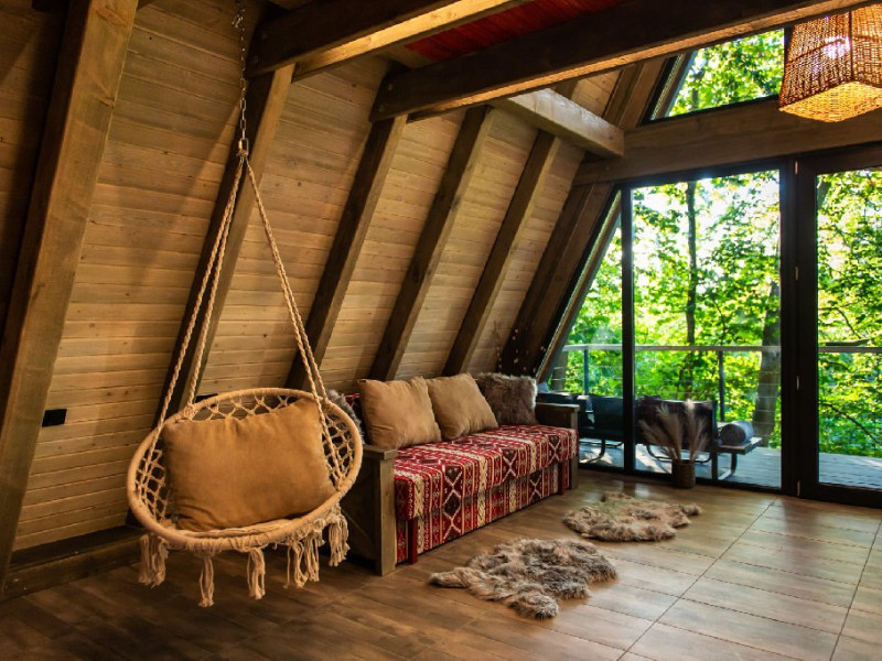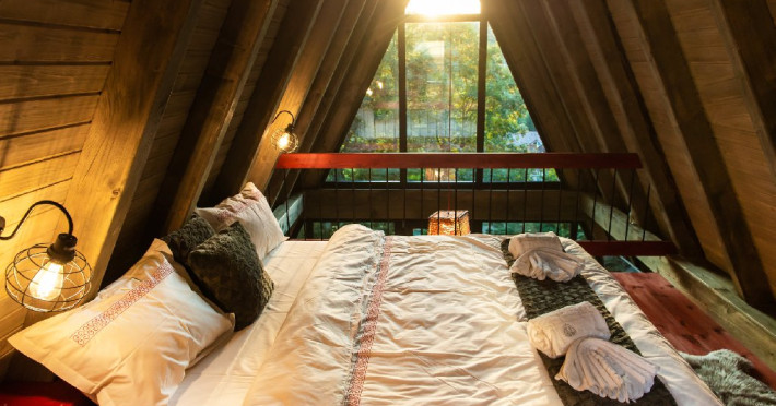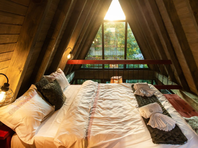 Doua casute de tip A va asteapta la Bran, intr-un peisaj de vis. O casuta poate gazdui 4 persoane, avand un dormitor open space in partea superioara, cu balcon interior si o canapea extensibila in partea de jos. Casuta dispune si de bucatarie, baie, loc de gratar si ceaun, loc pentru foc de tabara si ciubar. O sa aveti parte de o priveliste de vis catre Muntii Piatra Craiului, oferita de un perete integral din sticla al cabanei.