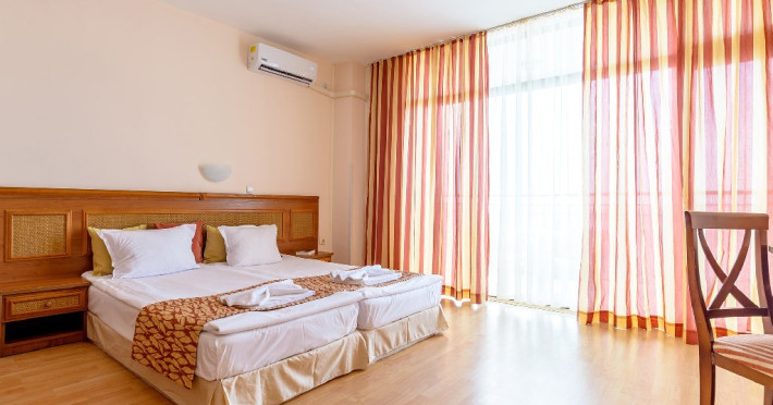 Localizare: Tiva del Mar este un hotel situat intre Sveti Vlas si Elenite. Hotelul se afla la 10 metri de plaja, iar un magazin alimentar se afla la 150 de m distanta. Facilitati hotel: Hotelul pune la dispozitia clientilor: loc de joaca pentru copii, animatie, piscina in aer liber cu sezlonguri si umbrele, cinema, fitness, jacuzzi, tenis de masa, Wi-Fi, seif (contra cost), masaj (contra cost), sauna (contra cost), biliard (contra cost), servicii de curatatorie (contra cost), parcare. Dotari camera: Camerele sunt dotate cu aer conditionat, TV, baie privata, uscator de par. Nota informativa: Pentru anumite facilitati din hotel sau din camera, hotelierul poate solicita taxe suplimentare. In momentul sosirii la hotel solicitati receptionerului sa va informeze cu exactitate asupra lor. Website: https://www.tivadelmar.com/