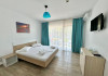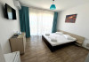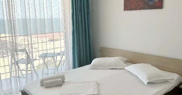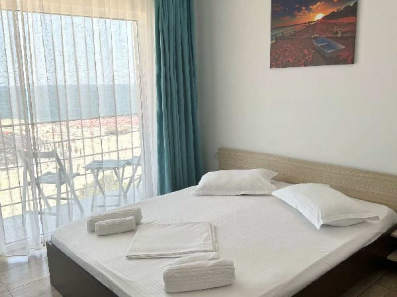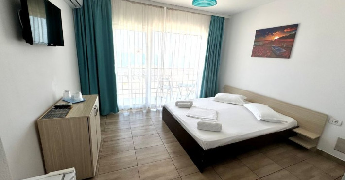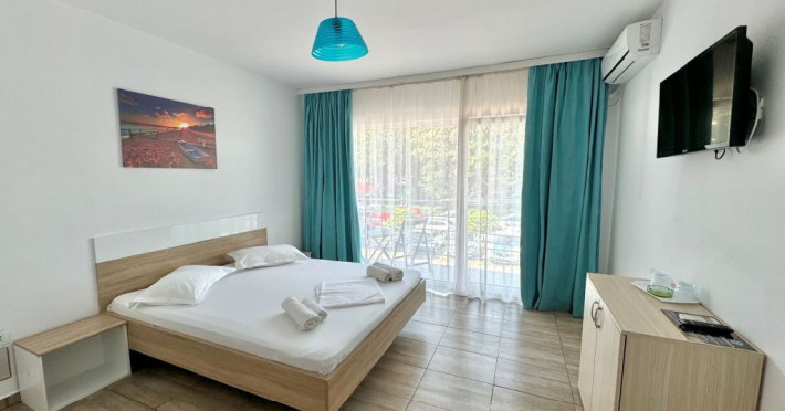 Camerele duble au o suprafata de aproximativ 16 mp, sunt dotate cu pat matrimonial, TV, frigider, aer conditionat, baie proprie cu cabina de dus, internet si dispun de balcon. Pot avea vedere la mare sau vedere la statiune.