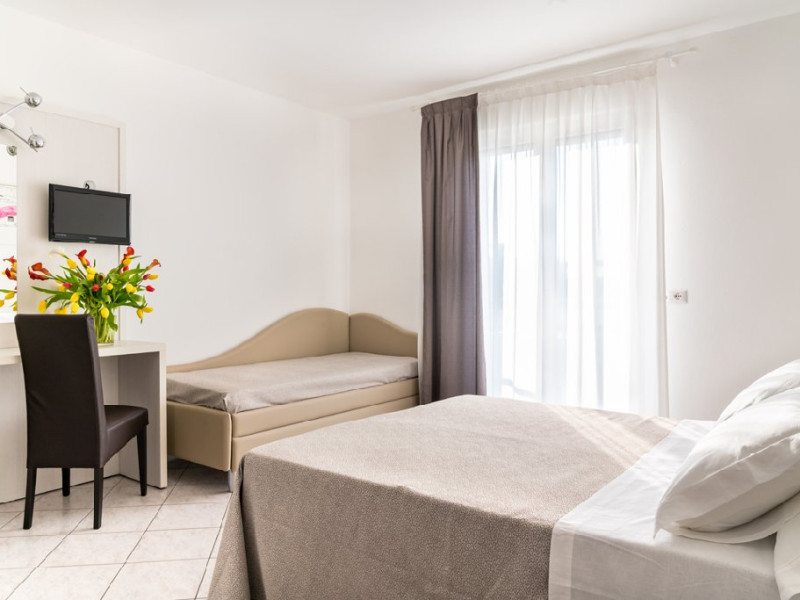 Camera dubla in regim single- 1 umbrela cu sezlong (contra cost) - 10 euro /persoana /zi se achita la receptie.