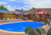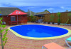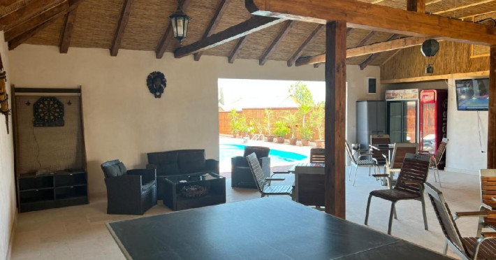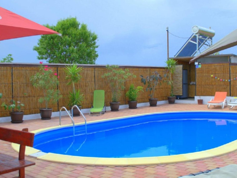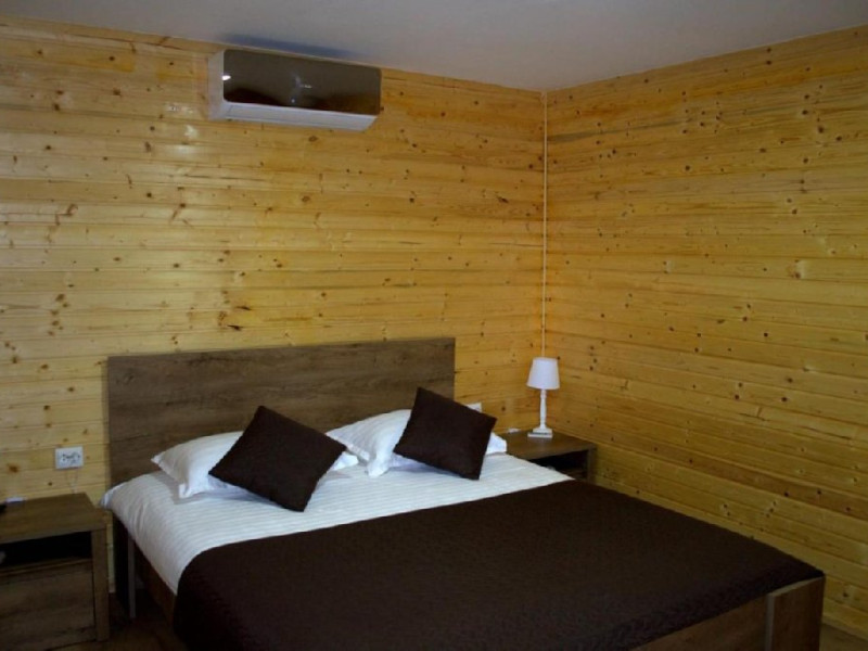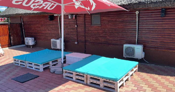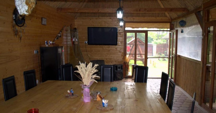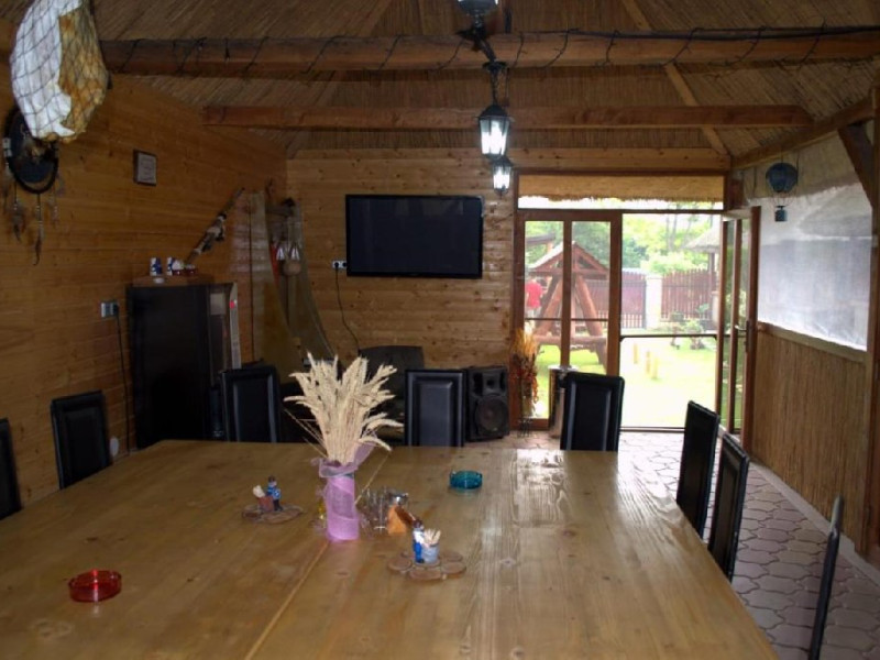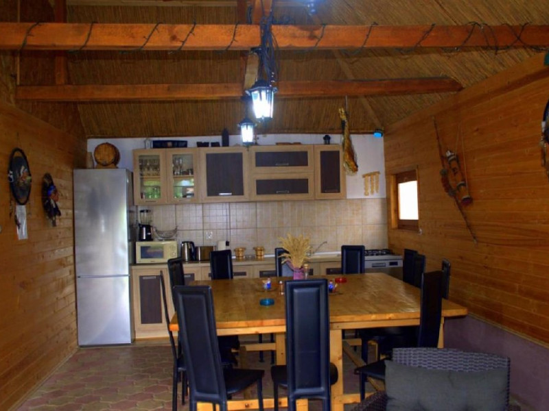 Patru casute a cate doua camere,fiecare casuta cu baie proprie si un salon spatios plus o bucatarie mare,utilata complet, gratar mare cu plita,o gradina,loc de joaca pentru copii,o piscina cu capacitate de douazeci de persoane. Locatia este in localitatea Visina la un km de Jurilovca locul de imbarcare spre Gura Portitei.