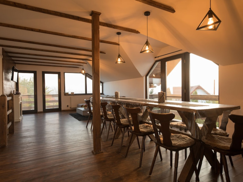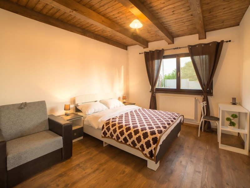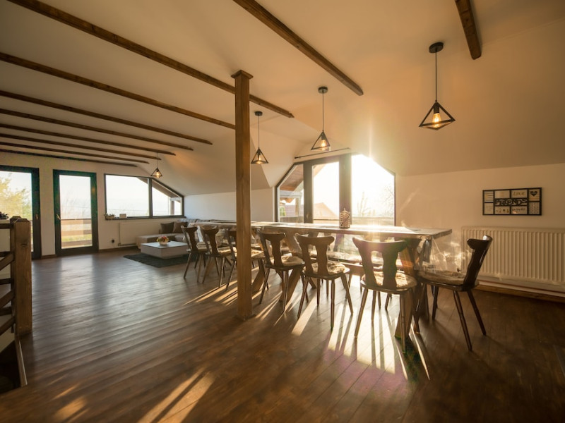 Located in Sibiu, 2.7 miles from Piața Mare, Casa City View provides accommodations with a garden, free WiFi, a shared kitchen, and a shared lounge. This property has a balcony and free private parking. The lodge is equipped with 5 bedrooms, 2 bathrooms, bed linen, towels, a flat-screen TV with satellite channels, a dining area, a fully equipped kitchen, and a terrace with city views. The air-conditioned lodge also has a seating area, and a bathroom with a shower, a hot tub and a bath. Speaking English and Romanian at the 24-hour front desk, staff are always on hand to help. A playground can be found at the lodge, along with a grill. Union Square is 2.9 miles from Casa City View, while The Council Tower of Sibiu is 3 miles from the property. The nearest airport is Sibiu International, 5 miles from the accommodation, and the property offers a paid airport shuttle service.WiFi is available in all areas and is free of charge. Free private parking is available on site (reservation is not needed). Pets are not allowed. Children of all ages are allowed. People no matter the age stay for free when using an available extra bed. You havent added any cribs. Any type of extra bed or crib is upon request and needs to be confirmed by management.Checkin Time: 15:00Checkin End Time: 00:00Checkout From: 00:00Checkout End Time: 11:00Hotel important information: Please inform Casa City View of your expected arrival time in advance. You can use the Special Requests box when booking, or contact the property directly using the contact details in your confirmation.