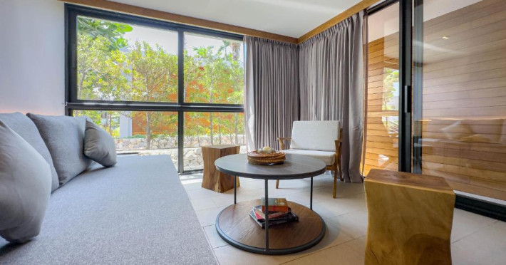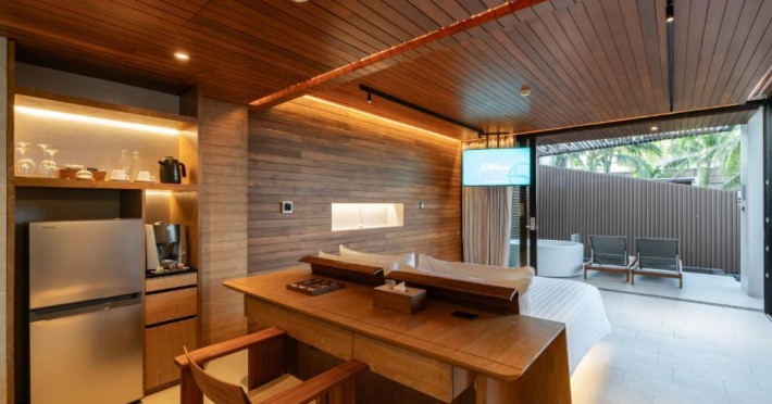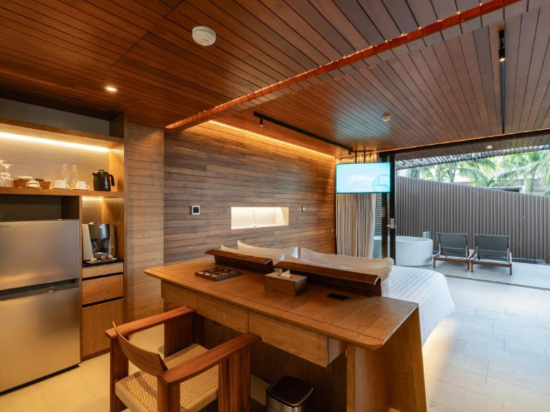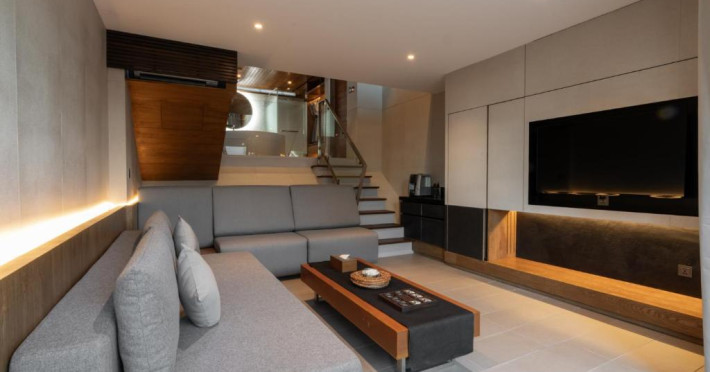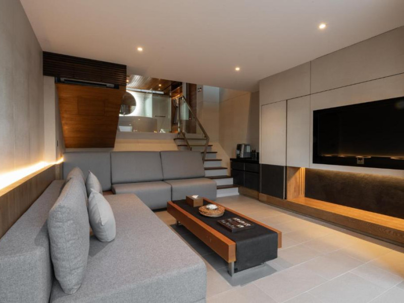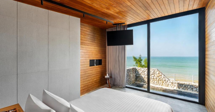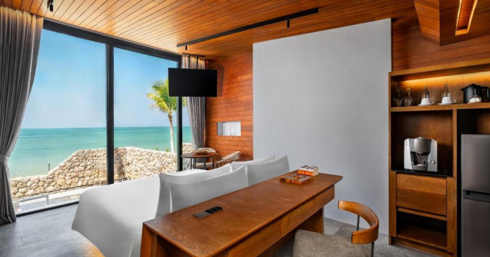 Veți putea admira vederea frumoasă la mare de la ferestrele de sticlă transparentă și de pe terasa la soare privată. Fiecare cameră este dotată cu un minibar gratuit, cu bere rece și gustări. De asemenea, există un TV cu ecran plat și o stație de andocare pentru iPod.