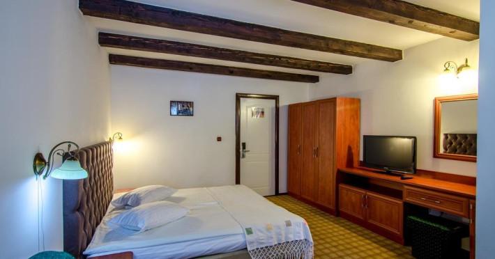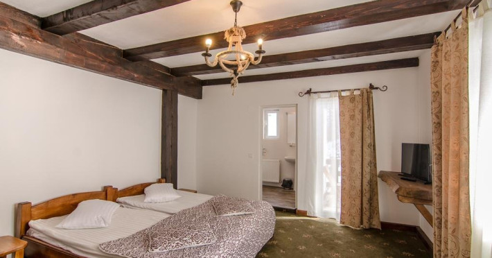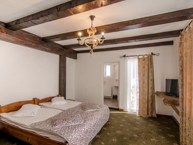 14 camere duble, cu pat matrimonial, televizor si baie proprie cu cada