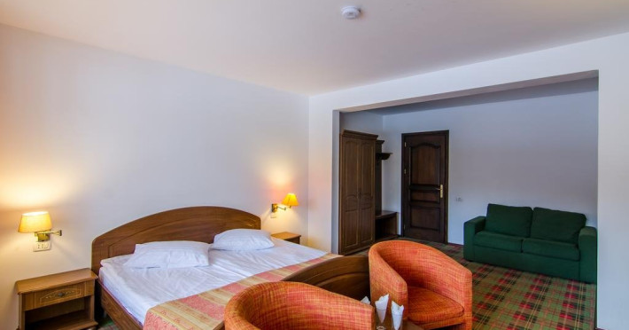 Camerele duble dispun de grup sanitar propriu, TV satelit, mobilier de calitate. Camerele din cadrul hotelului dispun de minibar. Apartamentele sunt formate din living si dormitor.