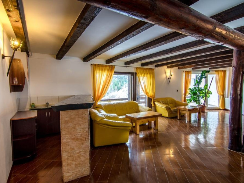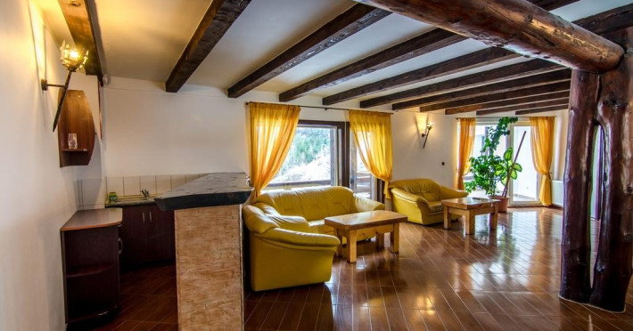 living cu bar si terasa pentru siesta si pauza de fumat camerele au terase spatioase; piscina interioara, atmosfera agreabila, ferestre luminoase, terasa pentru baile de soare; Jacuzzi si sauna uscata.