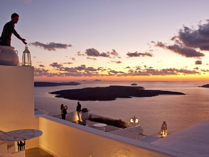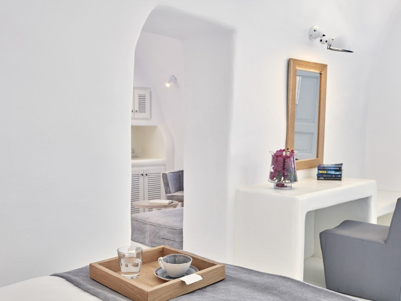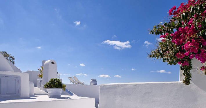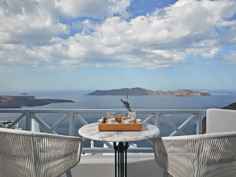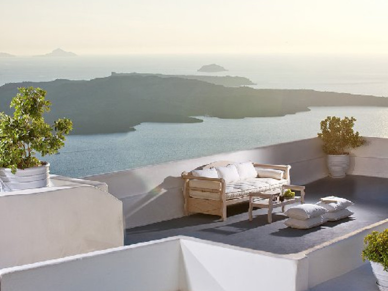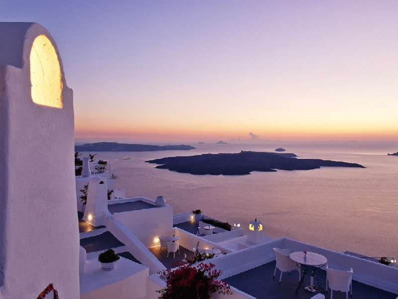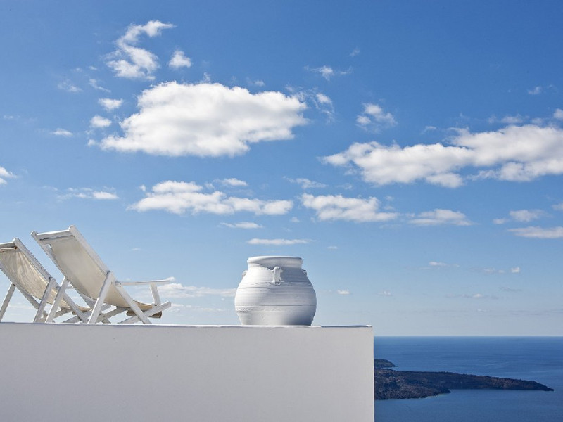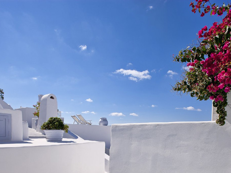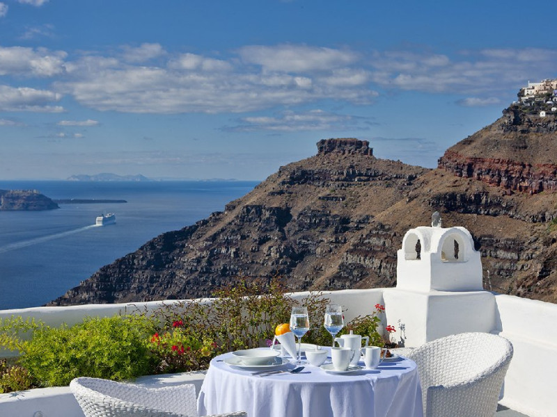 Hotelul se afla situat la 500 de metri de orasul Fira, la 7 km de plaja Monolithos, 12 km de plaja cu nisip negru Kamari si 14 km de Perissa.
