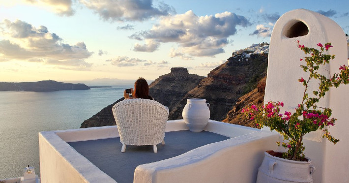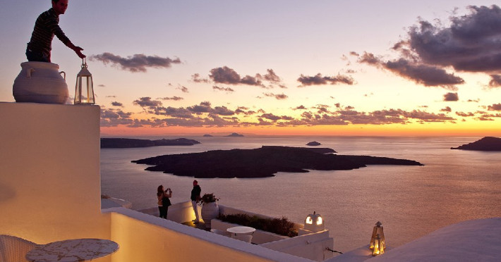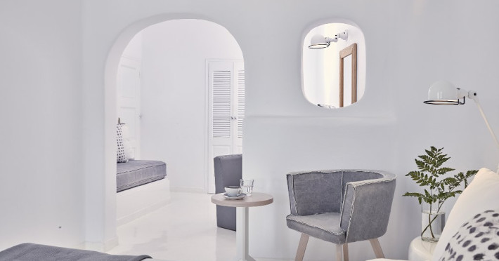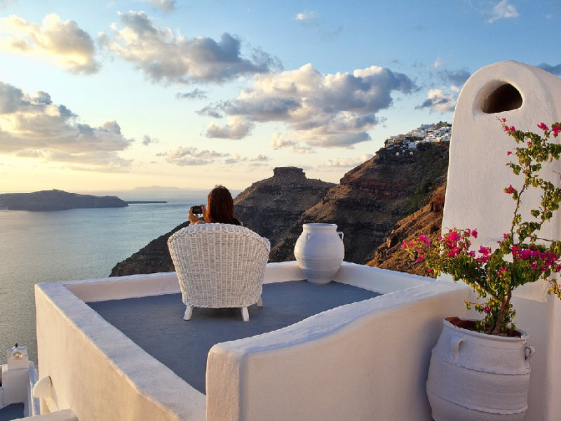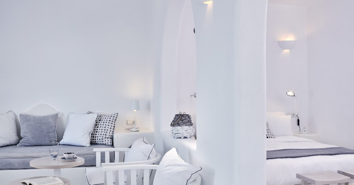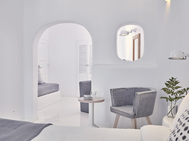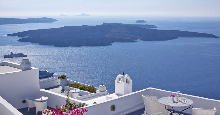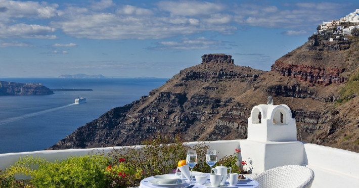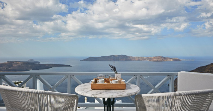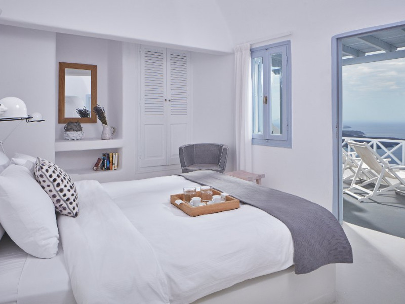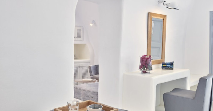 Hotelul se afla situat la 500 de metri de orasul Fira, la 7 km de plaja Monolithos, 12 km de plaja cu nisip negru Kamari si 14 km de Perissa.