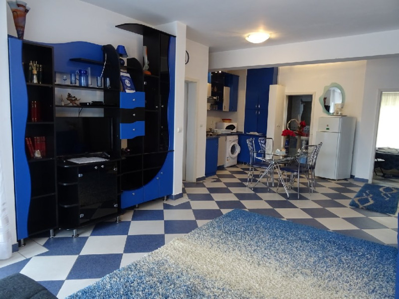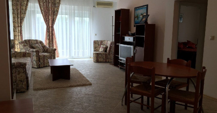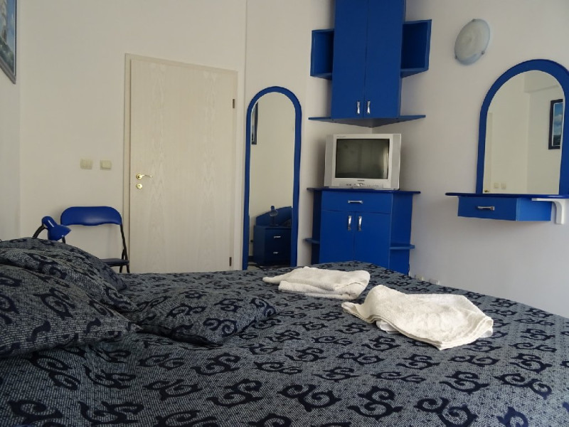 Apartament standard de 3 camere: este compus dintr-un dormitor mare cu pat dublu, un dormitor mic cu pat dublu, un living cu canapea extensibila pentru doua persoane, zona de luat masa si bucatarie deschisa, o baie si un balcon. Apartamentul de 3 camere standard din Club Topaz a Neptun are o suprafata de aproximativ 52 mp, distribuita in trei camere: living cu bucatarie deschisa si canapea extensibila, un dormitor cu pat dublu, un dormitor mic cu pat dublu si o baie. Acest apartament este recomandat pentru 4-6 persoane. Amenajat intr-un stil modern si confortabil, apartamentul ofera toate facilitatile necesare unui oaspete la Marea Neagra. Livingul include o zona de relaxare cu canapea extensibila, televizor, aer conditionat, internet si seif. Bucataria este complet utilata, avand aragaz, frigider, vesela, cuptor cu microunde, cafetiera, masina de spalat rufe si pahare. Dormitorul principal este dotat cu pat matrimonial, iar al doilea dormitor mai mic are pat dublu. Baia este echipata cu cada. Apartamentul dispune de o terasa amenajata cu mese si scaune, care serveste si ca spatiu pentru fumatori. Printre dotarile suplimentare se numara fier si masa de calcat, uscator de par. In toate apartamentele, Neptun Apartments ofera prosoape si lenjerie de pat, care pot fi utilizate pe intreaga durata a sejurului. Acest apartament este situat la etajul 2 accesibil pe scari.