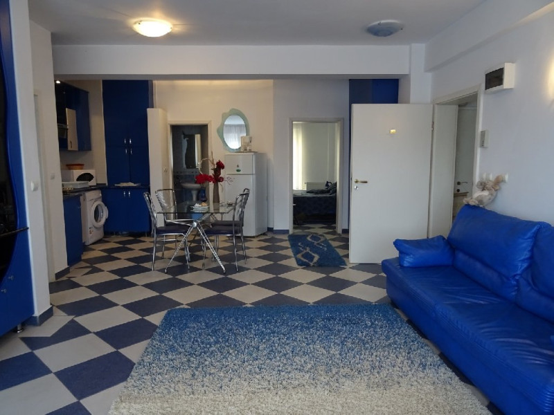 Apartamentele din Club Topaz: Apartament de doua camere: este format dintr-un dormitor cu pat dublu, un living dotat cu canapea extensibila pentru doua persoane, o bucatarie deschisa cu zona de luat masa, o baie si un balcon.Apartamentele de 2 camere din Club Topaz a Neptun au o suprafata de aproximativ 42 mp, distribuita in doua camere: un living cu bucatarie deschisa, un dormitor si o baie. Apartamentele sunt amenajate intr-un stil confortabil, oferind toate facilitatile necesare unui sejur placut la Marea Neagra. Livingul include o zona de relaxare cu canapea extensibila, fotolii, televizor, aer conditionat, internet si seif. Bucataria este complet utilata, avand aragaz, frigider, vesela, cuptor cu microunde, cafetiera, masina de spalat rufe si pahare. Dormitorul este dotat cu pat matrimonial, iar baia principala include chiuveta si cabina de dus, in timp ce cea de-a doua baie este dotata doar cu toaleta (WC). Terasele mari sunt amenajate cu mese si scaune, fiind si un spatiu destinat fumatorilor. Printre alte dotari ale apartamentului se numara fier si masa de calcat, uscator de par. In toate apartamentele, Neptun Apartments pune la dispozitie prosoape si lenjerie de pat, disponibile pe intreaga durata a sejurului. Apartamentele pot fi la parter sau la ultimul etaj (4) accesibil doar pe scari.