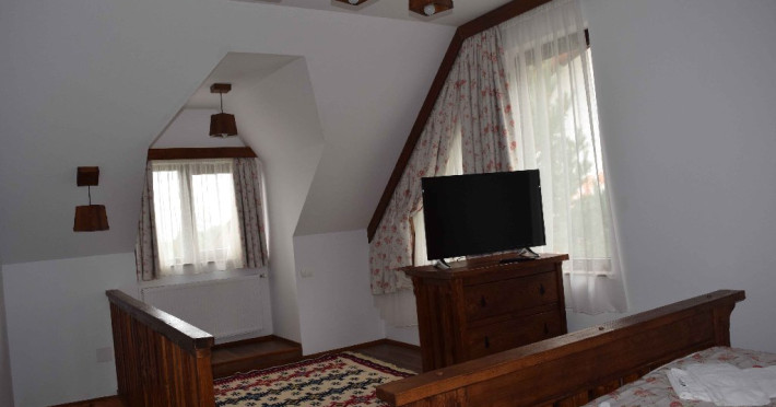Descriere generala:Club Vila Bran este locul unde trebuie sa mergeti daca vreti sa va petreceti concediul la munte in Romania, fara sa regretati ca nu l-ati petrecut in strainatate.Club Vila Bran se intinde pe o suprafata de aprox. 60.000 mp si este format din 12 vile (cu o capacitate intre 5 si 24 camere) - 114 camere si 11 apartamente.Camerele si apartamentele dispun de balcon (112 camere si 11 apartamente), grup sanitar propriu cu cada/cabina dus, TV - cablu.Apartamentele sunt formate din 2 camere/fiecare (1 dormitor si 1 living). 3 dintre ele au sauna si cada cu hidromasaj.In serile din cadrul pachetului de Craciun se organizeaza :- spectacole cu foc de tabara, muzica folk si vin fiert, dansuri populare romanesti, - recitaluri de muzica sustinute atat de artisti locali, cat si de artisti si trupe cunoscute in Romania, petreceri cu DJ, foc de artificii. - intr-una din zilele pachetului de Craciun va invitam la o piesa de Teatru. De asemenea, veti putea folosi gratuit facilitatile bazei de agrement: -piscina acoperita si incalzita, zona SPA cu sauna umeda, sauna uscata si camera de relaxare, sala de sport cu aparate de fitness si mese de ping-pong, sala de jocuri (sah, table, sjoelen, mini - bowling, air - hockey, biliard, bank-shot), echitatie in manej (cal, ponei), tiroliana, tir cu arcul, panou de catarare, darts, teren de fotbal, zona de sanius, locuri de joaca pentru copii (interior si exterior), Clubul Copiilor, parc natural, parc istoric (12 statui reprezentand regi si domnitori din istoria noastra, incepand de la Burebista pana la Regina Maria).Echipa de Animatie Club Vila Bran va organiza pe parcursul sejurului concursuri si jocuri atat pentru adulti cat si pentru copii, Parada Mascotelor, scenete cu Mascote (la sala de Teatru), mini disco (discoteca celor mici), petreceri pentru copii cu clovni, baloane si face-painting. Toate acestea vor putea fi folosite/organizate in limita disponibilitatii si a conditiilor meteo.