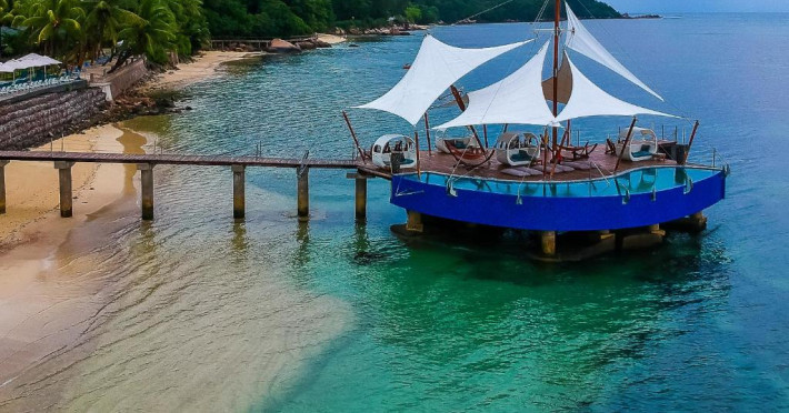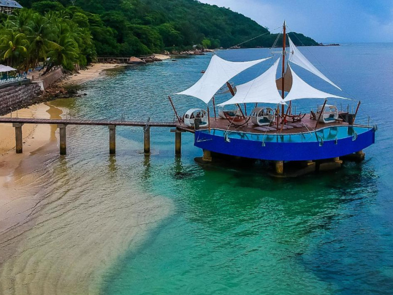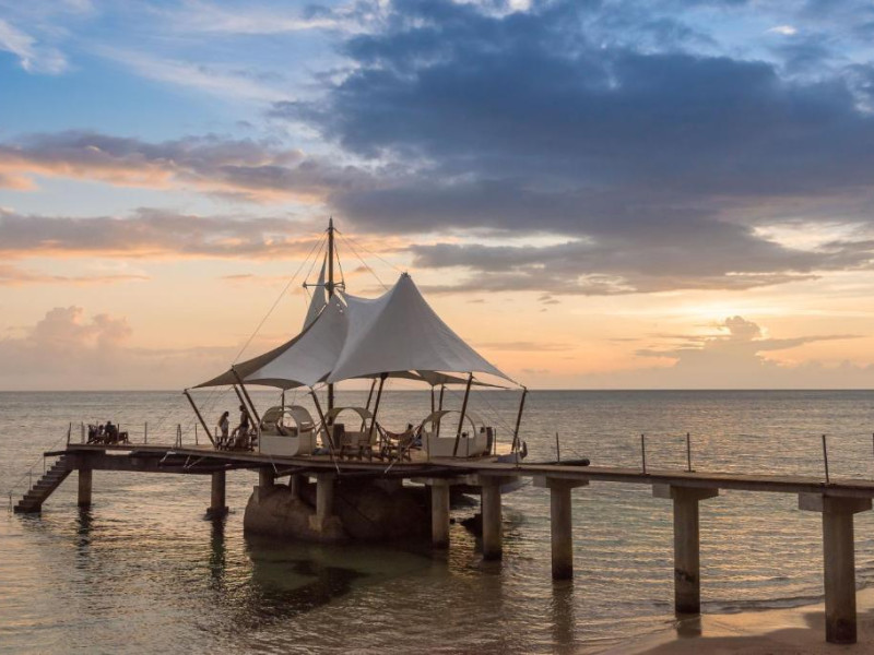 Complexul dispune de două piscine infinity cu vedere la ocean, un centru spa pentru relaxare completă și trei restaurante care servesc specialități creole și internaționale. Camerele și suitele, decorate in stil colonial modern, oferă balcoane sau terase private cu priveliști către Oceanul Indian.
