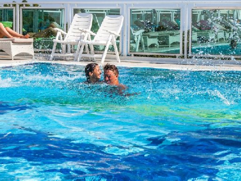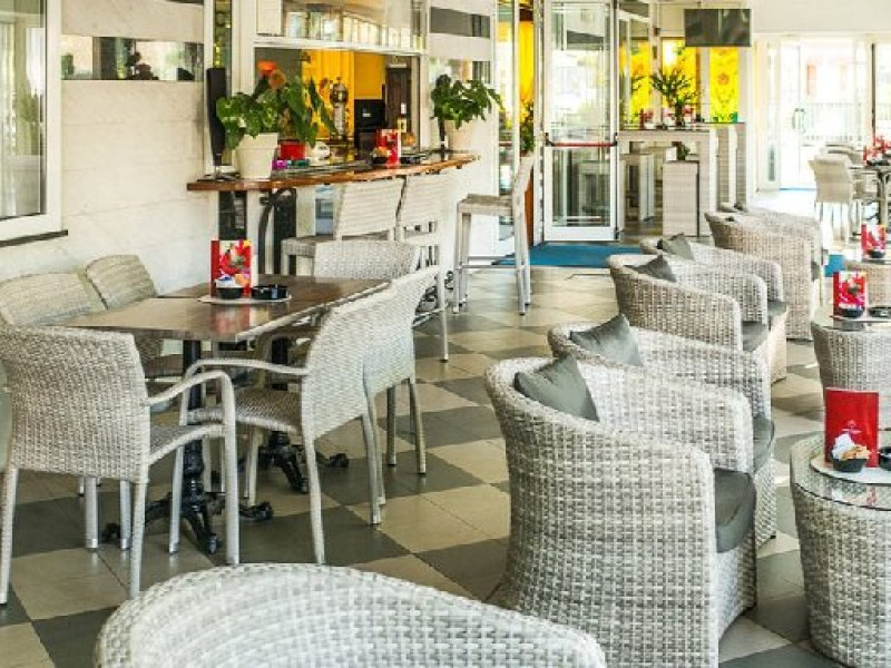 Facilitati Hotel Colombo: Hotelul dispune de receptie, 2 lifturi, zona TV si lectura, piscina, loc de joaca pentru copii, plaja privata, AC, wifi (contra cost)
